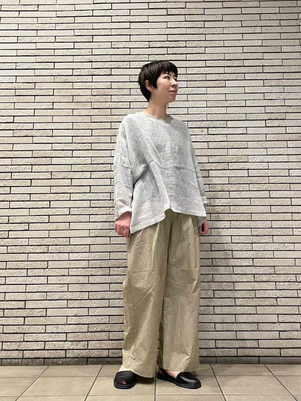 今回はワイドパンツをあわせて、ナチュラルな装いに。