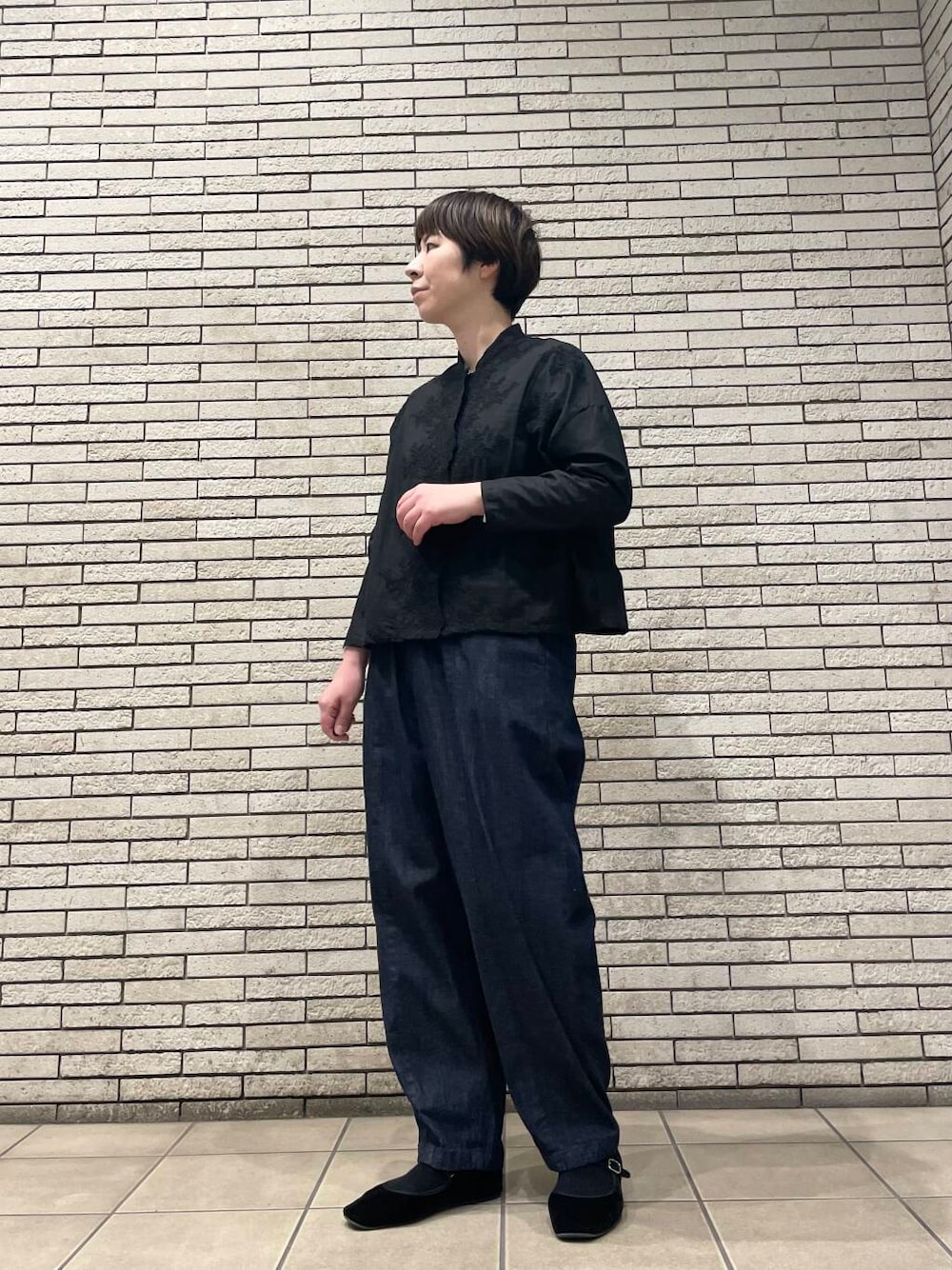 すっきりしたショート丈は、ボトムとのバランスがとりやすいです。