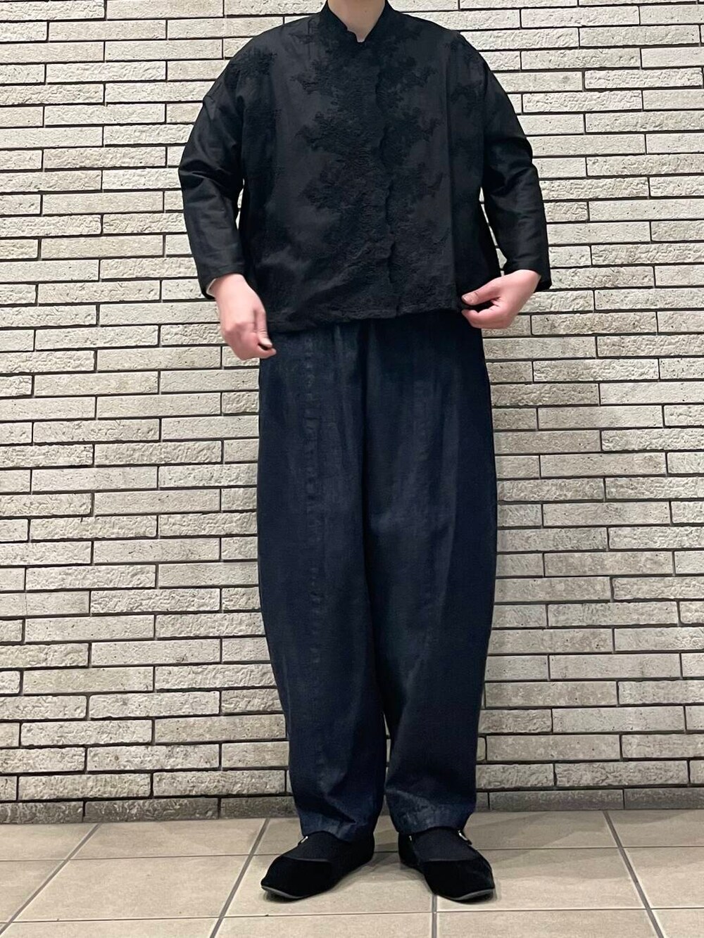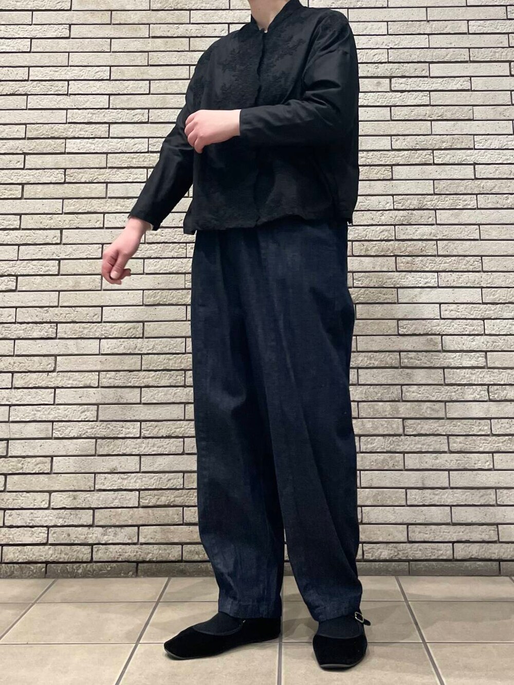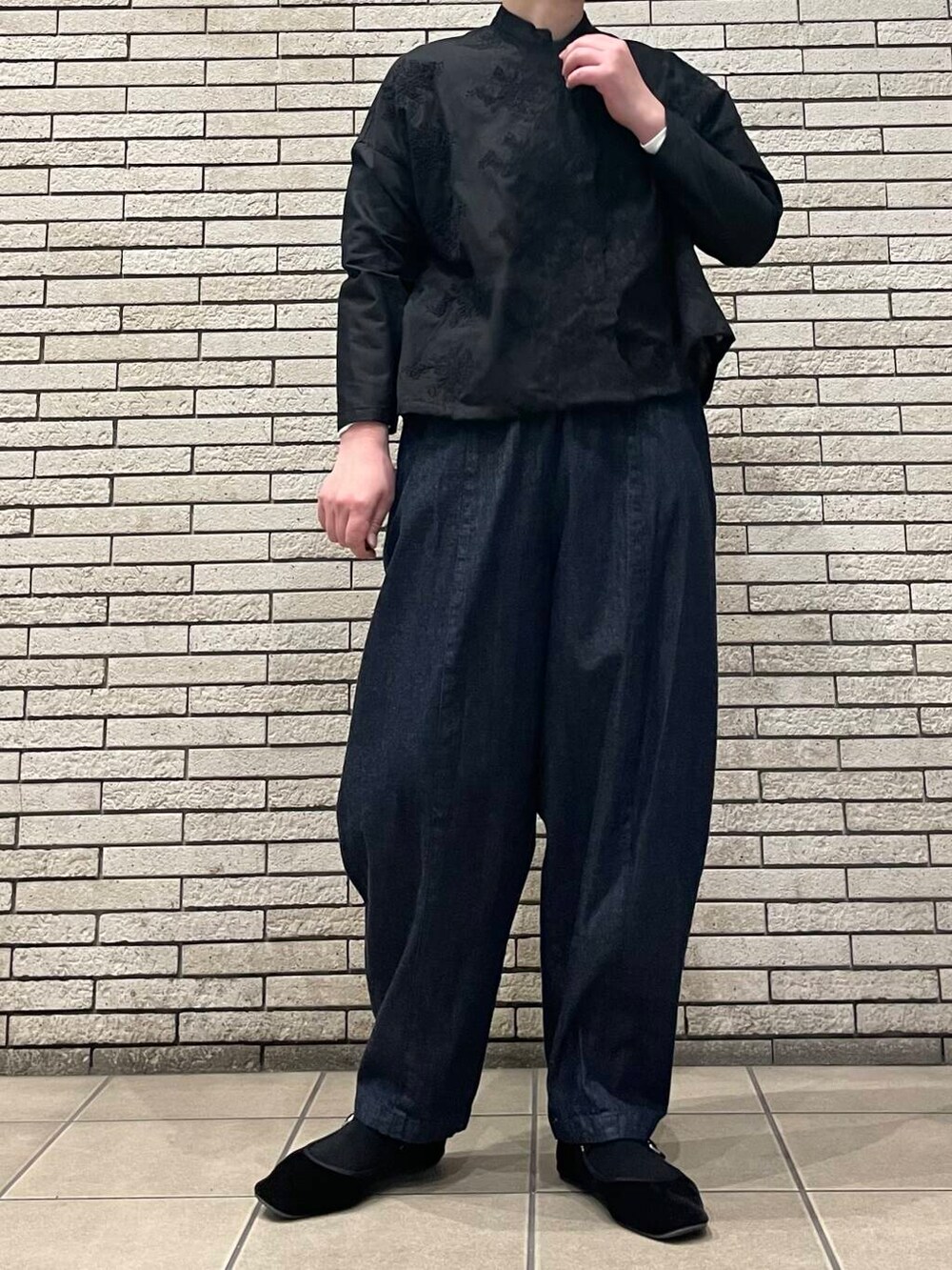 今回はインディゴのデニムとあわせて、重めのトーンでクラシカルな装いに。