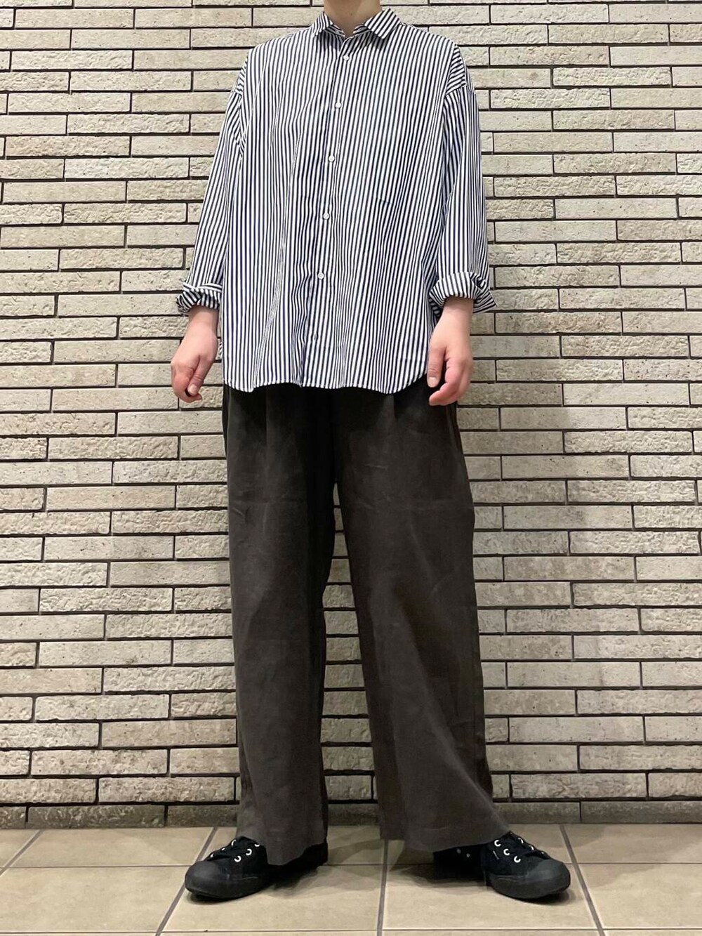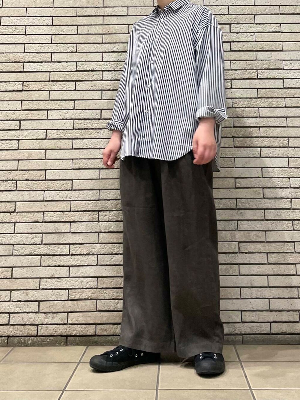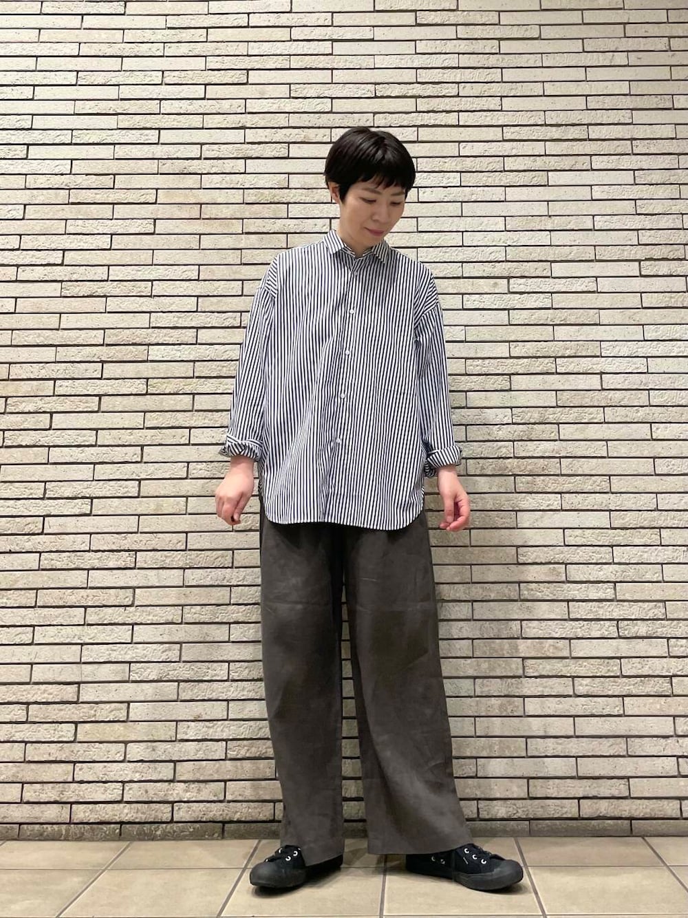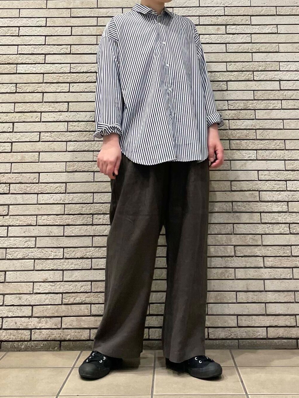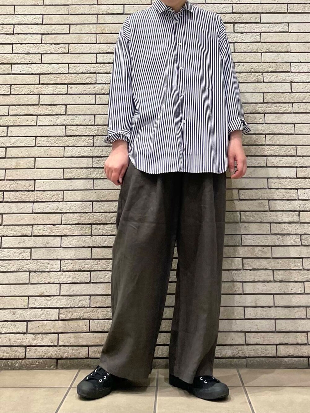 今回はリネンのパンツと合わせてカジュアルな装いです。ボトムによって全体の雰囲気がかわります^ ^