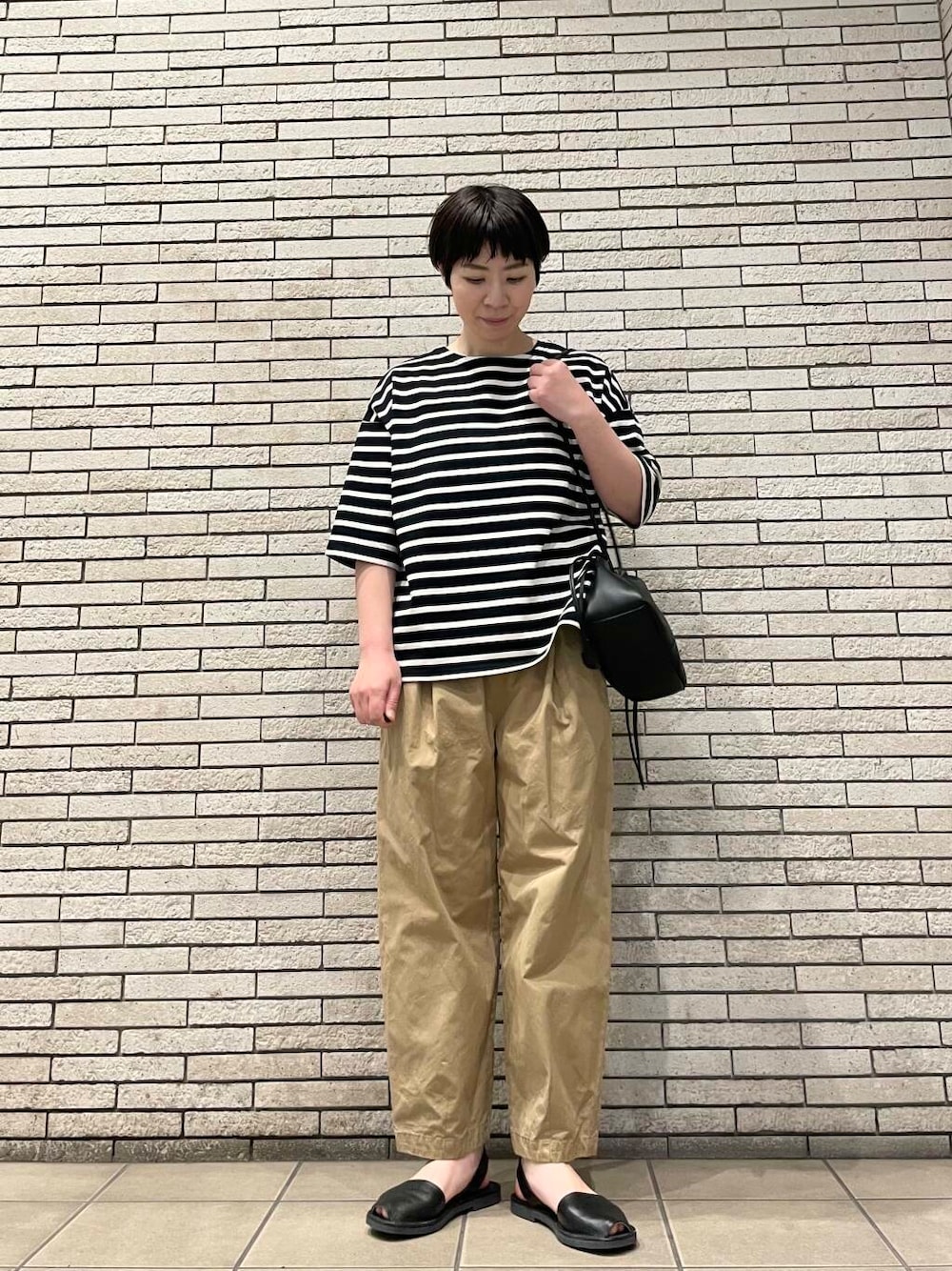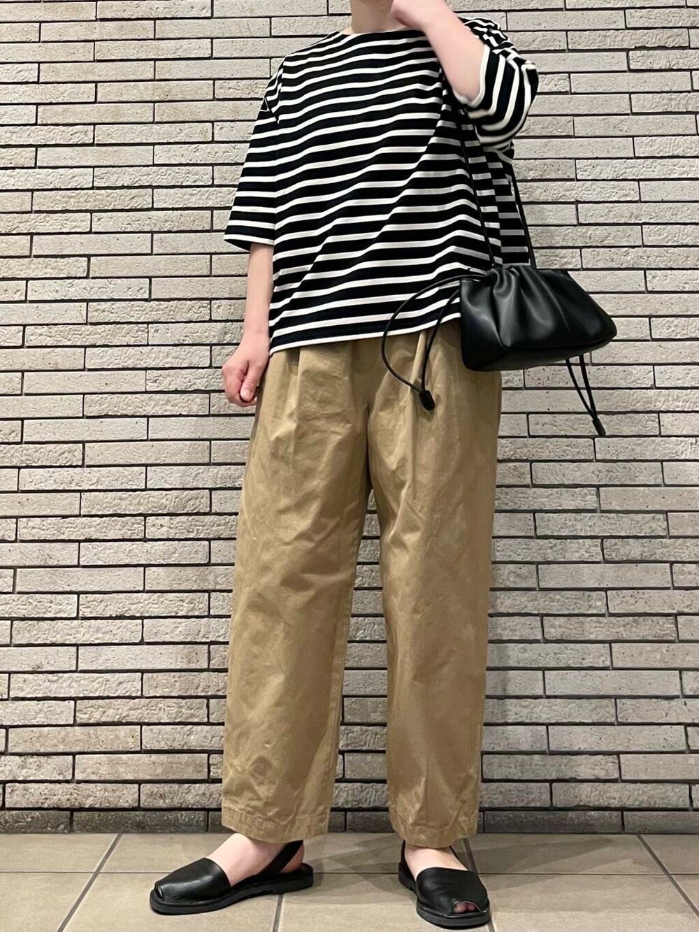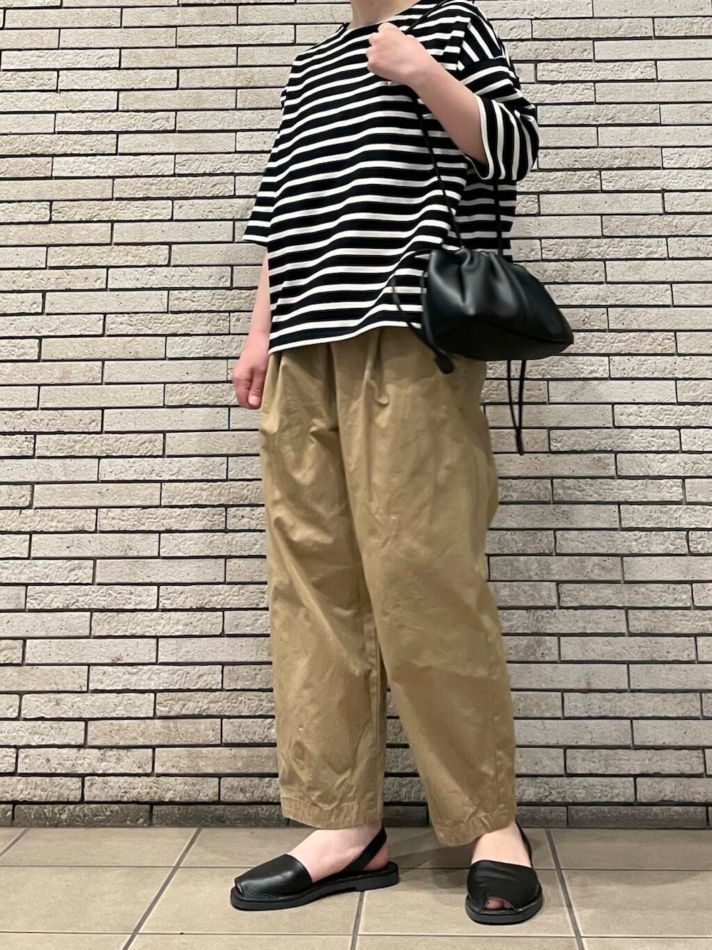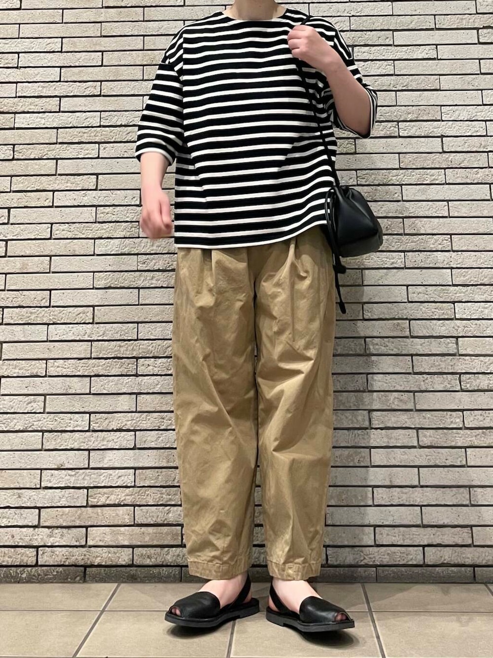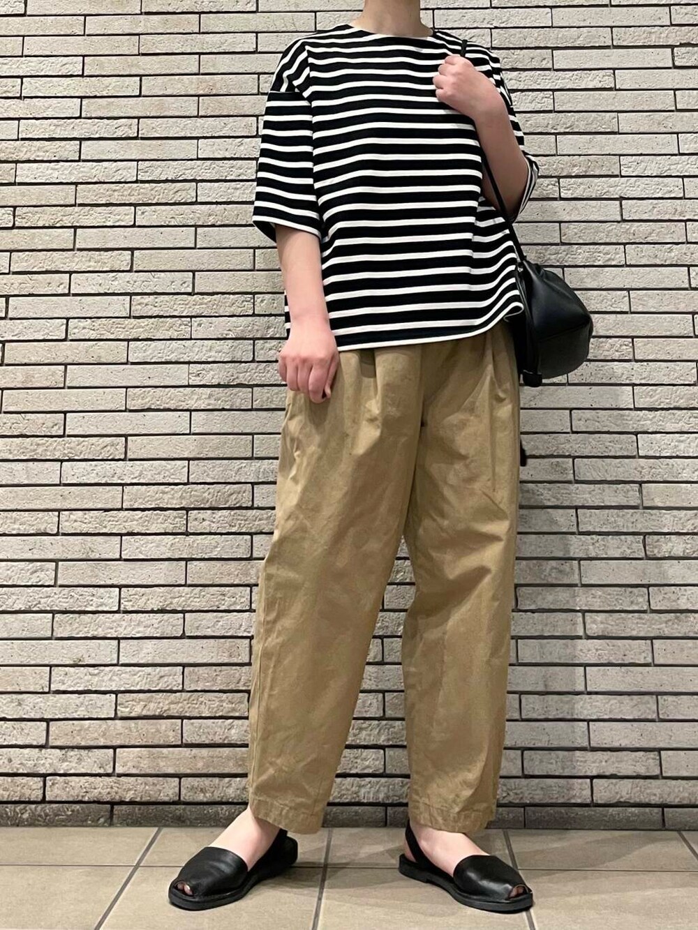 人気のコットンクロップドパンツに合わせてシンプルなカジュアルスタイルです。