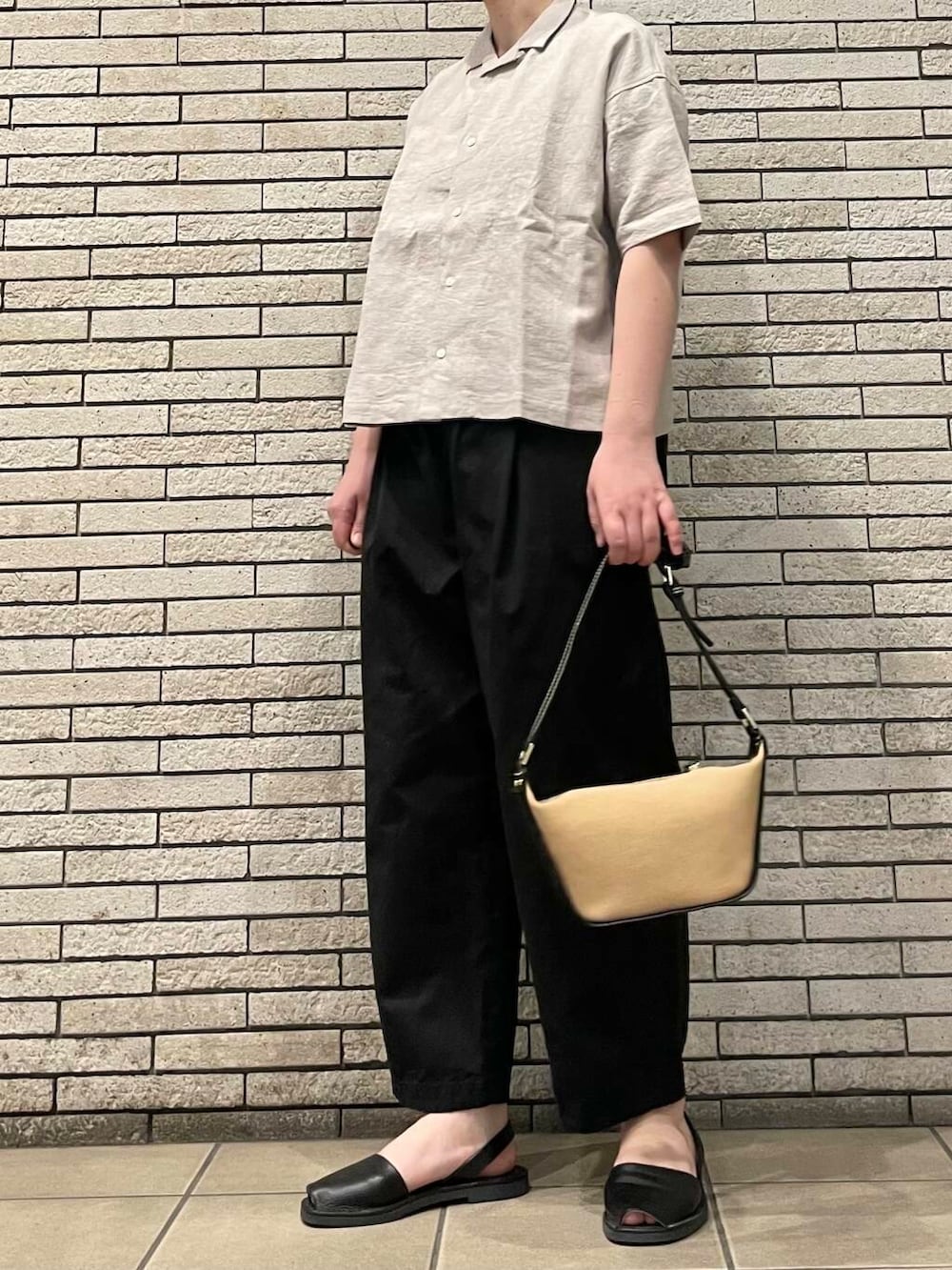今回はコットンクロップドパンツとあわせて、スッキリとした印象に。小物はキレイ見えするテイストのものであわせました。