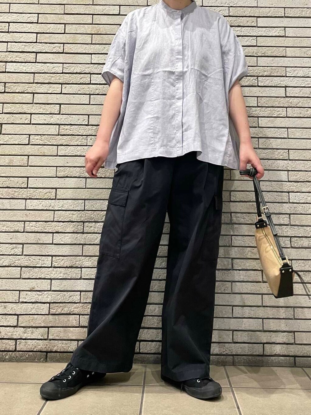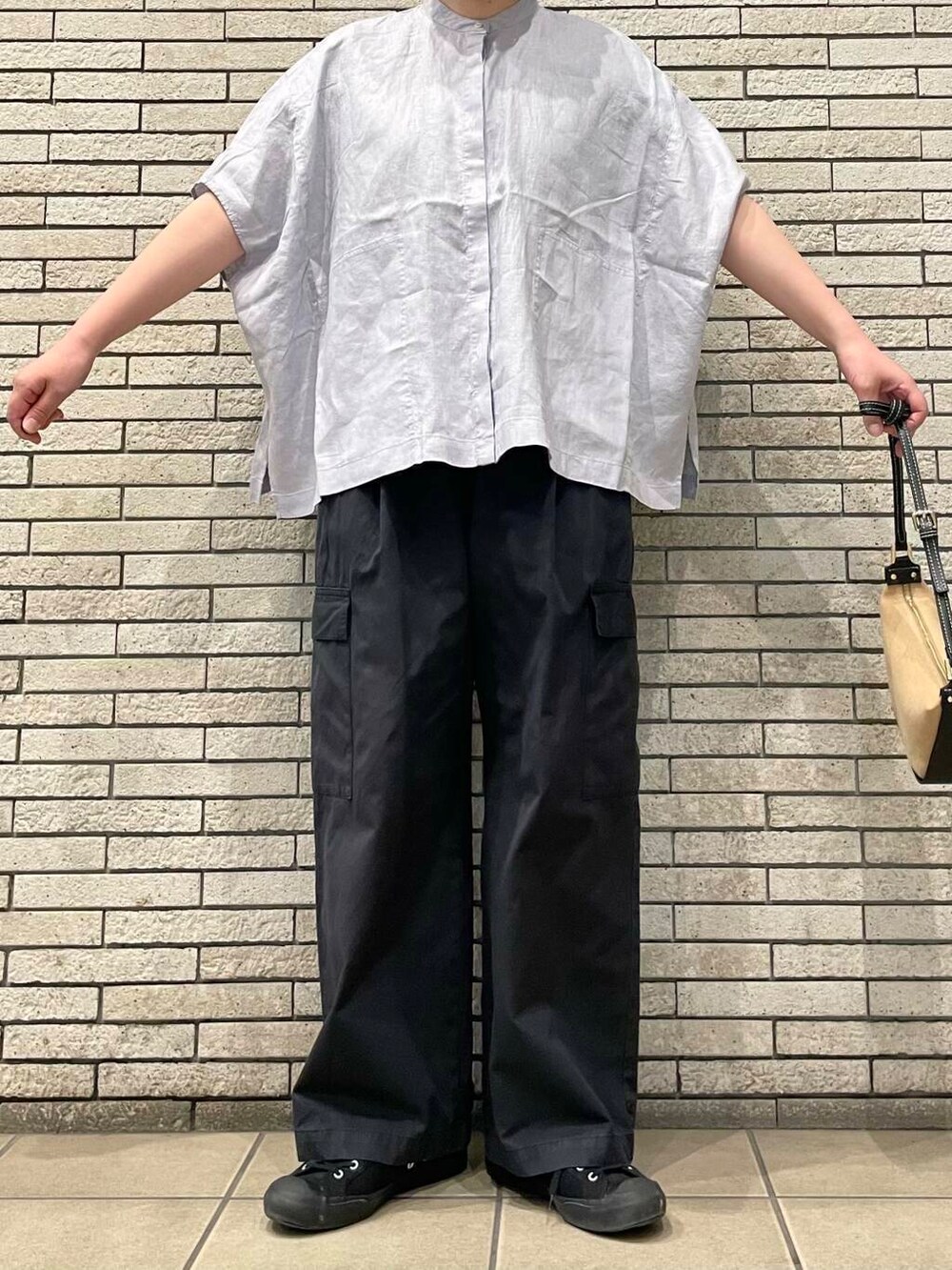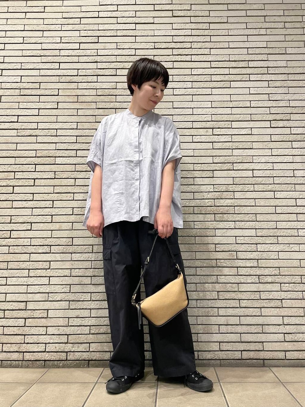 リネン素材で程よい厚みの生地感です。身幅がたっぷりで、からだのラインを拾いにくく着やすい1着です。ドライタッチな肌ざわりでこれからの季節にピッタリです。