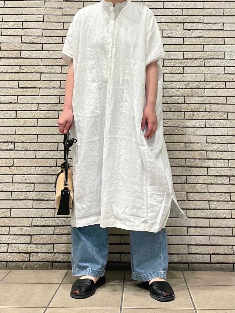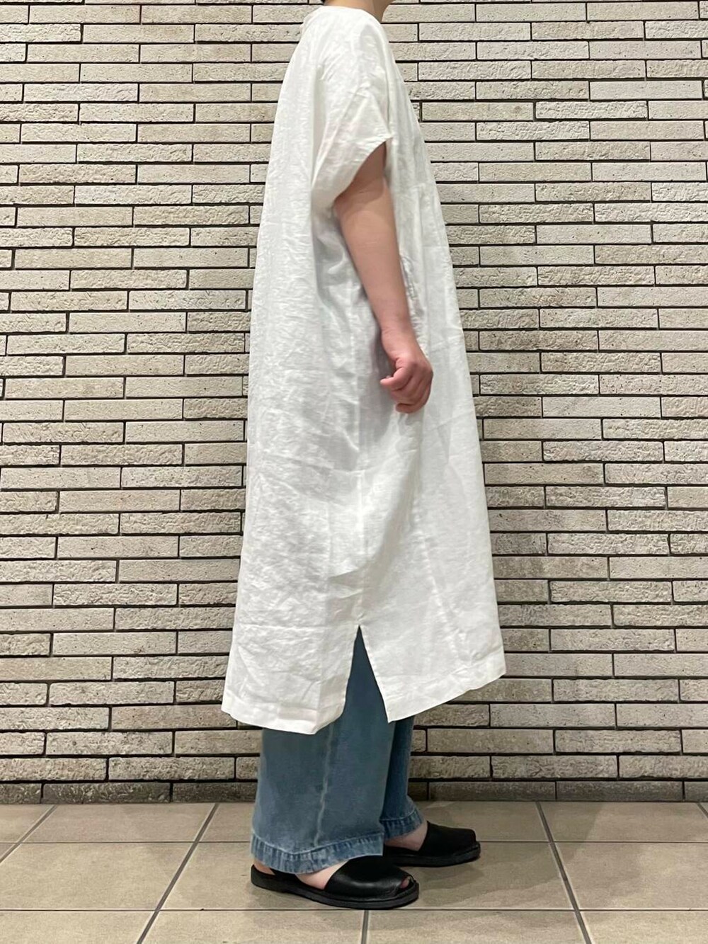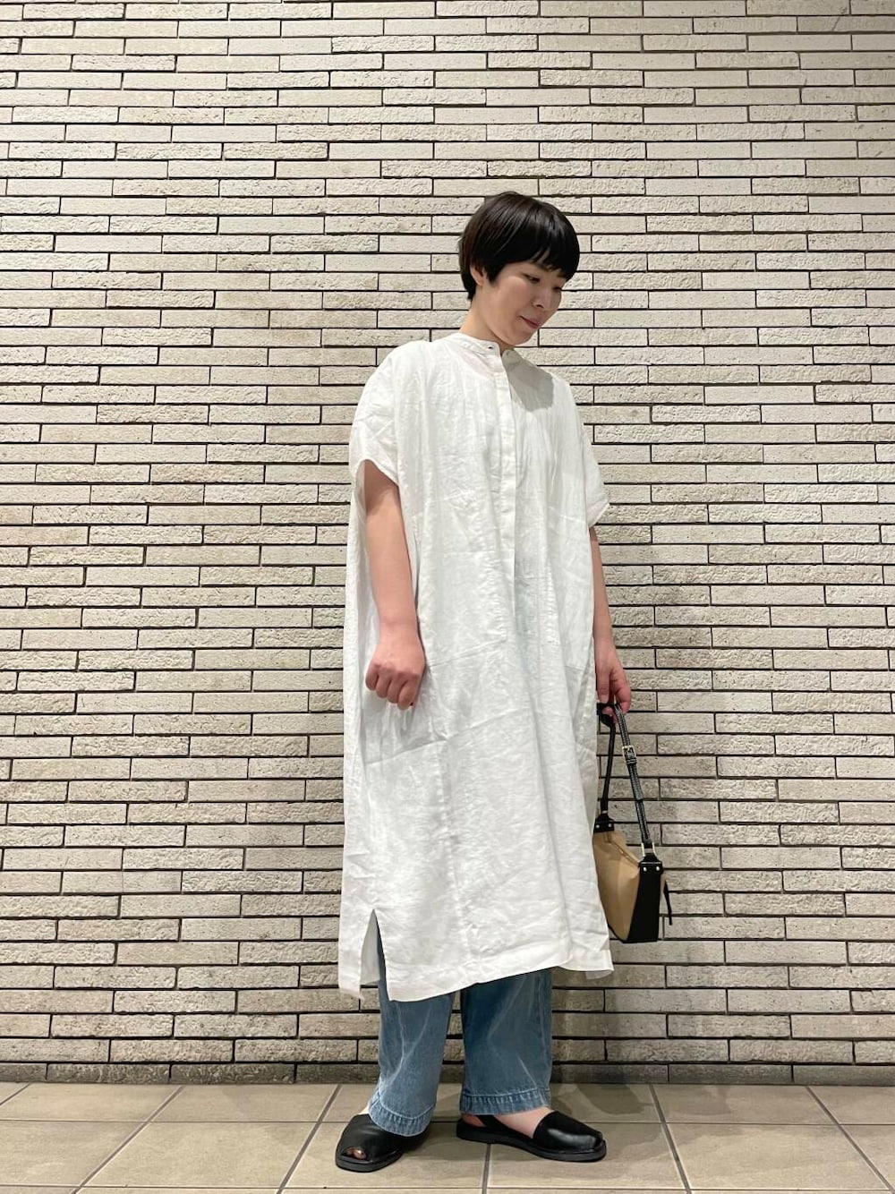 ワンピースはリネン素材で涼しく着用いただけます。ワイドシルエットですが、落ち感があるためパンツと重ねて着やすいです○