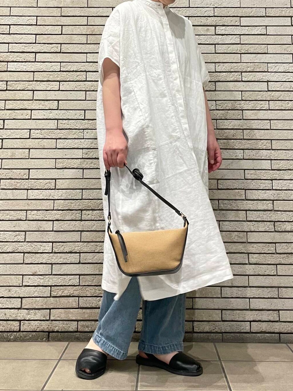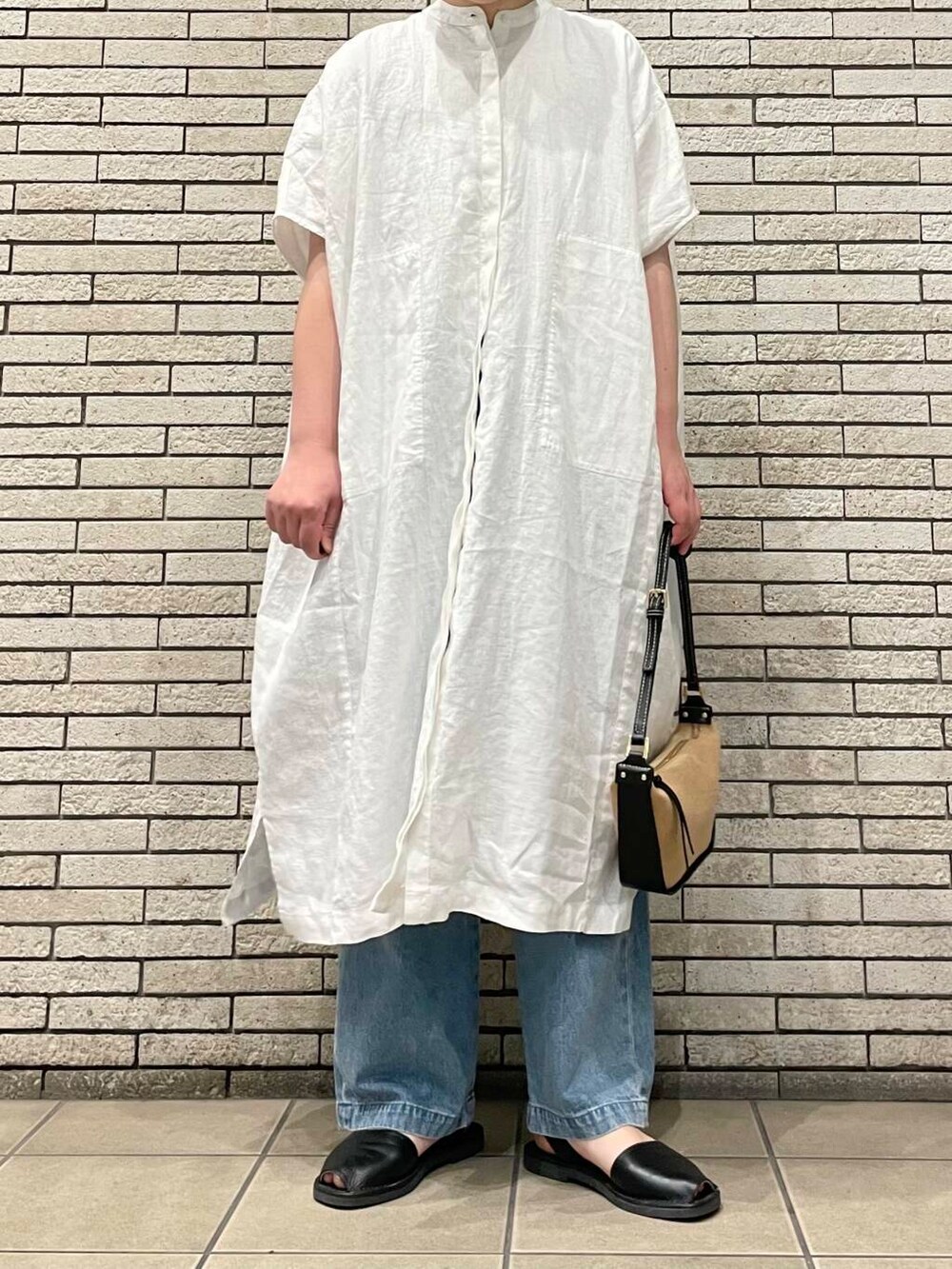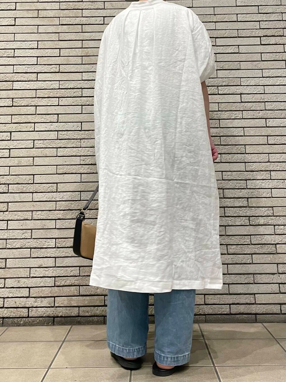 ワンピースはリネン素材で涼しく着用いただけます。ワイドシルエットですが、落ち感があるためパンツと重ねて着やすいです○