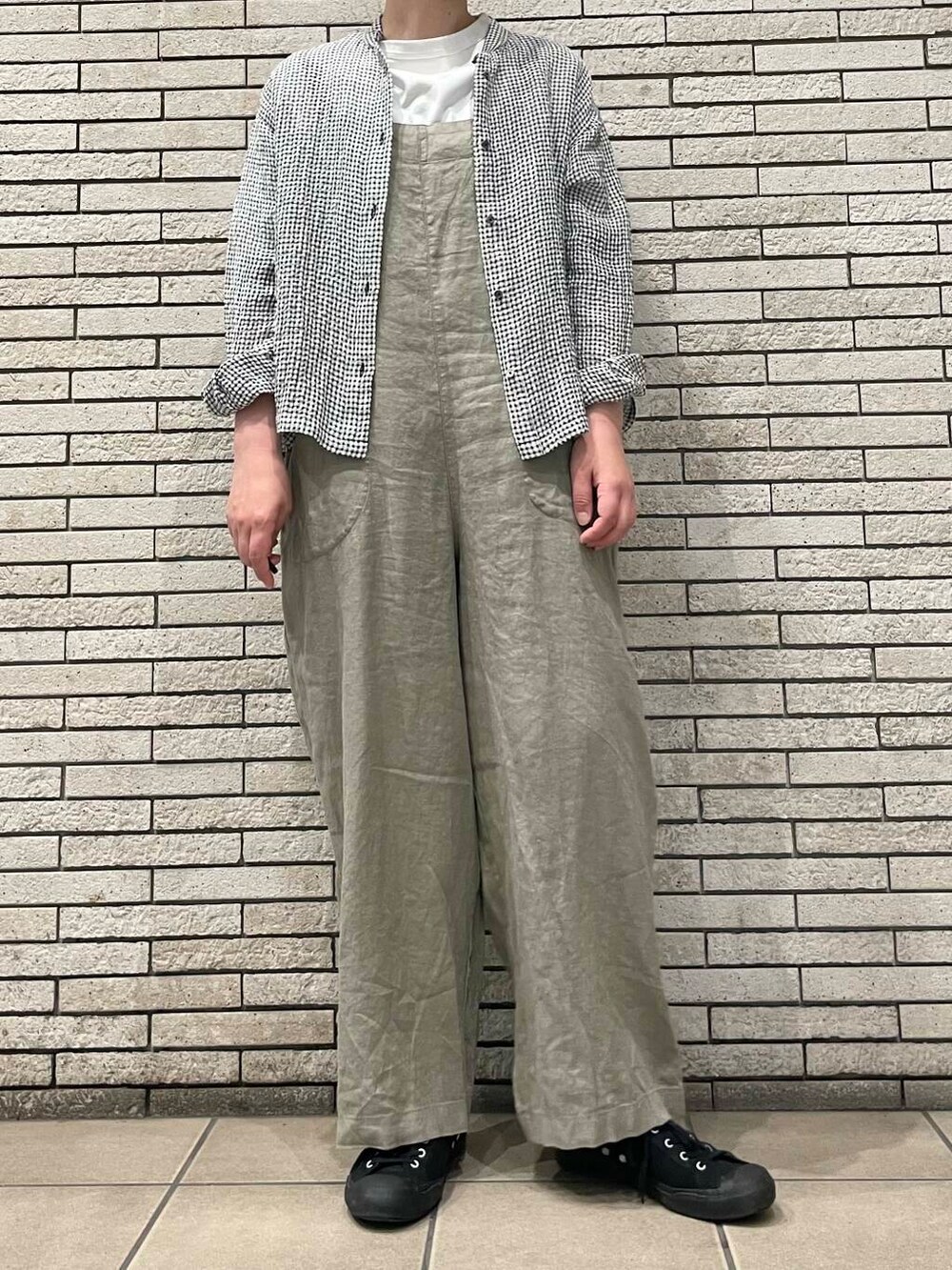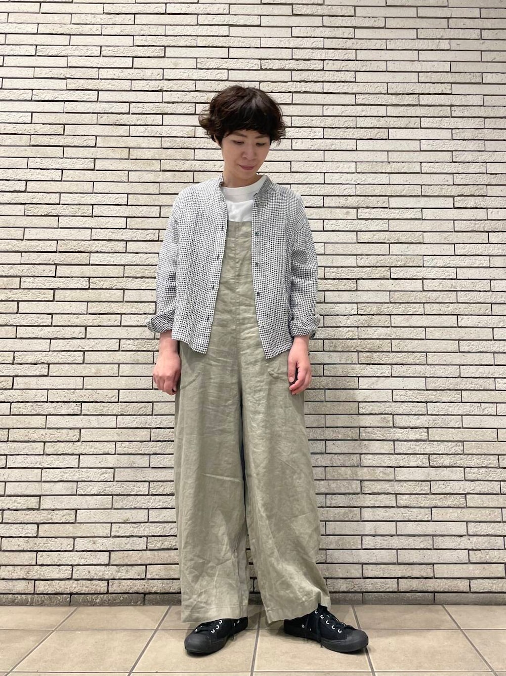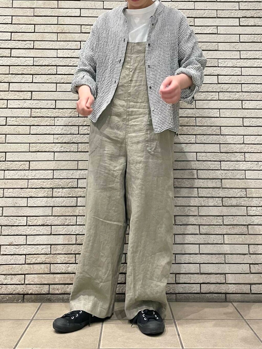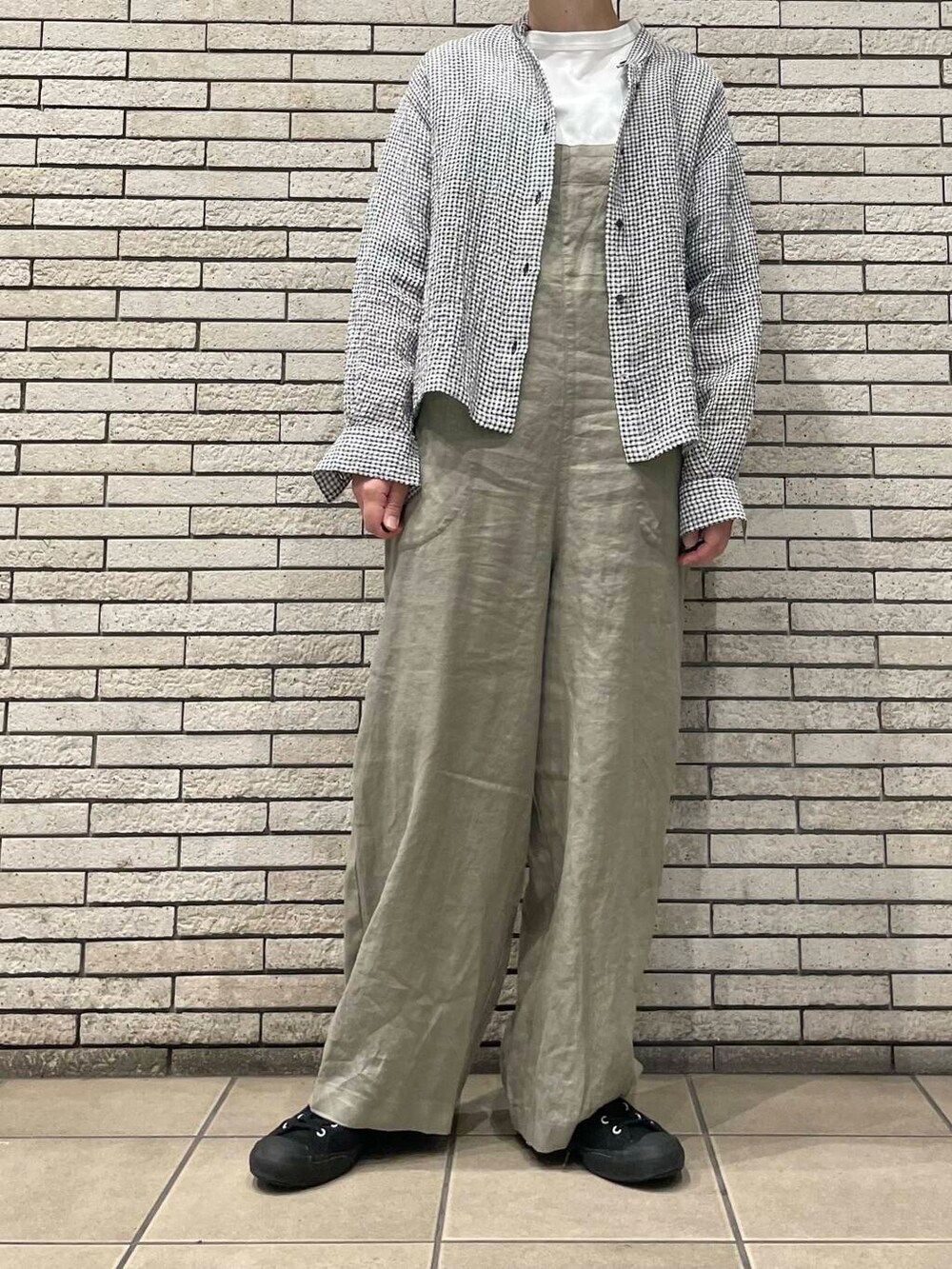 シャツを羽織って、ぐぐぐっとロールアップしたりちょっとした変化をつけることで、いつもと違ったサロペットコーデに変わります◎