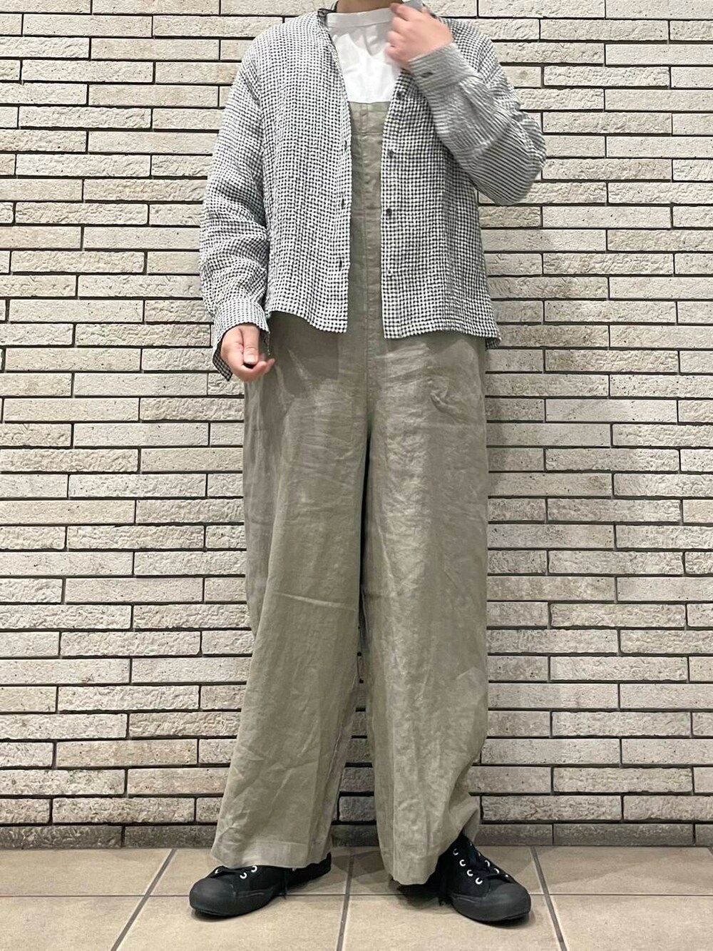 シャツは、サラッとドライな肌触りです。しわ感が魅力的です。程よいサイズ感で、1枚でももちろん○羽織としても重宝します。シンプルなバンドカラーがすっきりとした印象です。