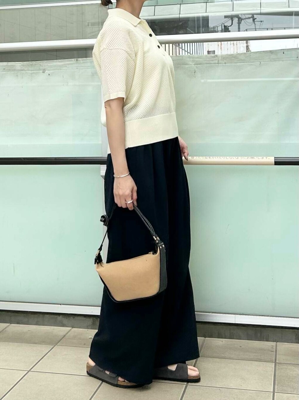 トップスはメッシュニットで涼しくオシャレに着られます。