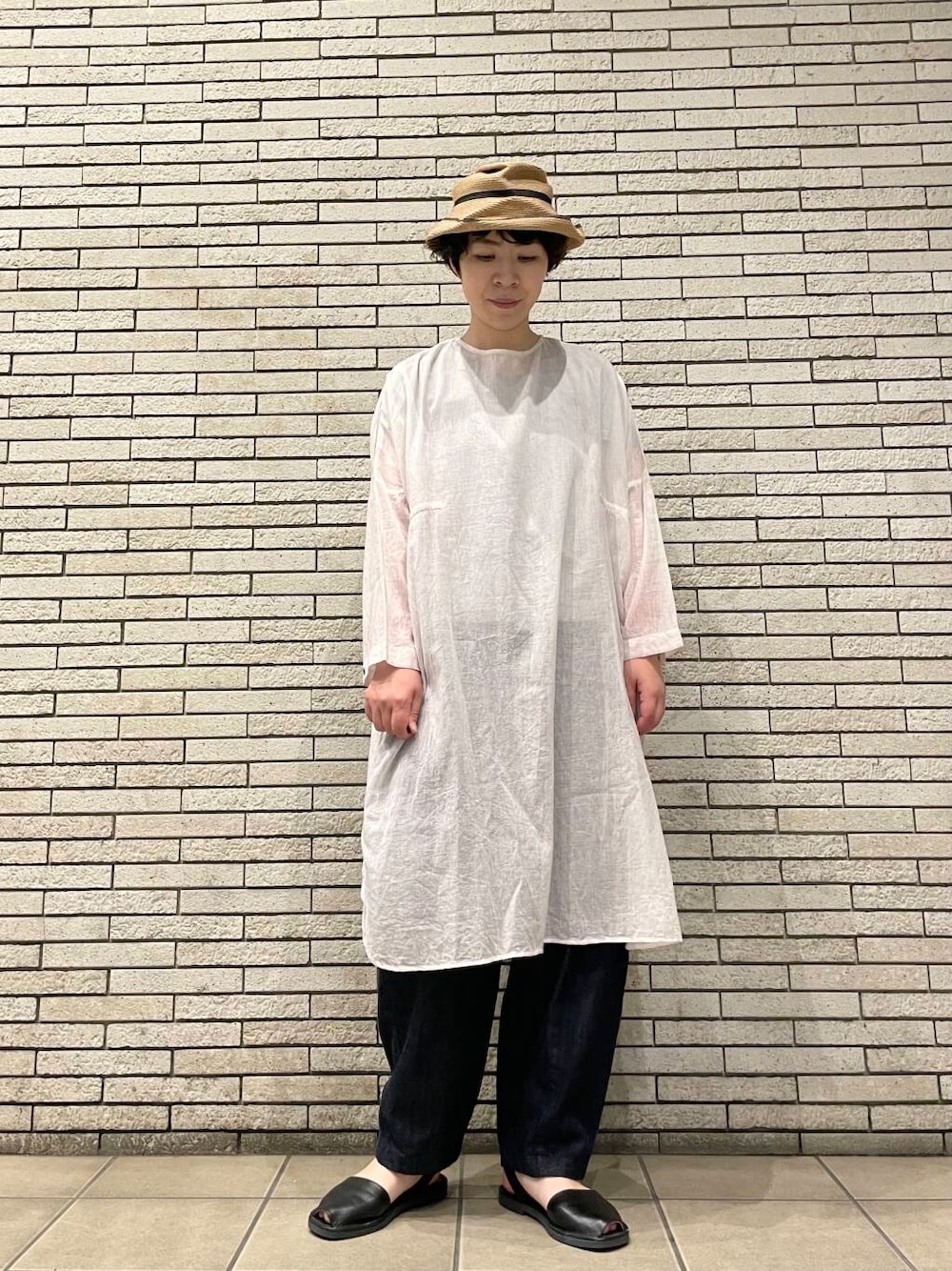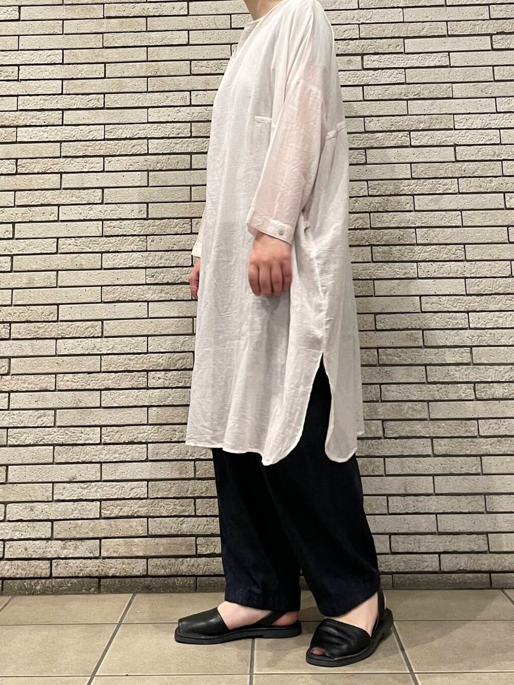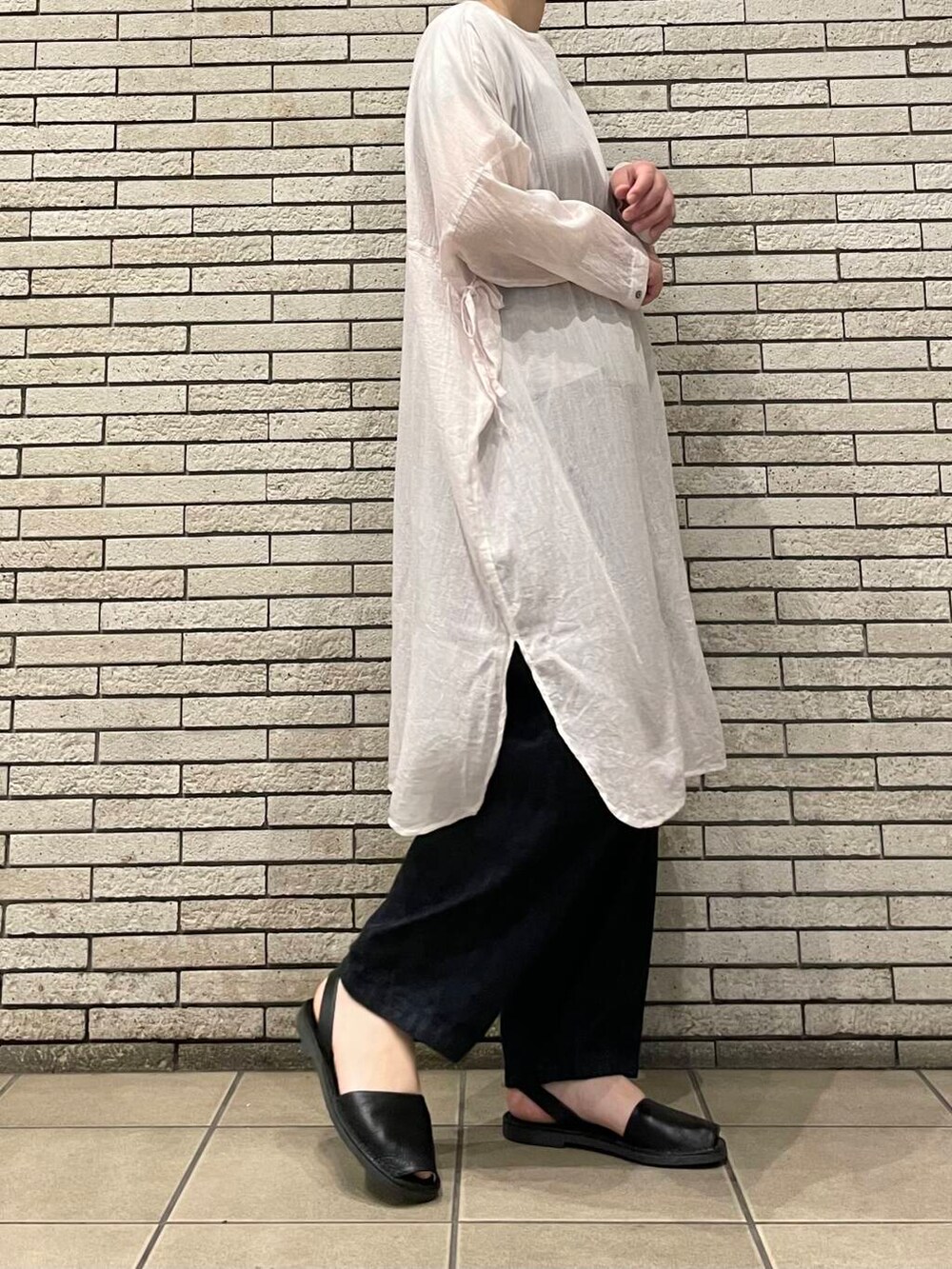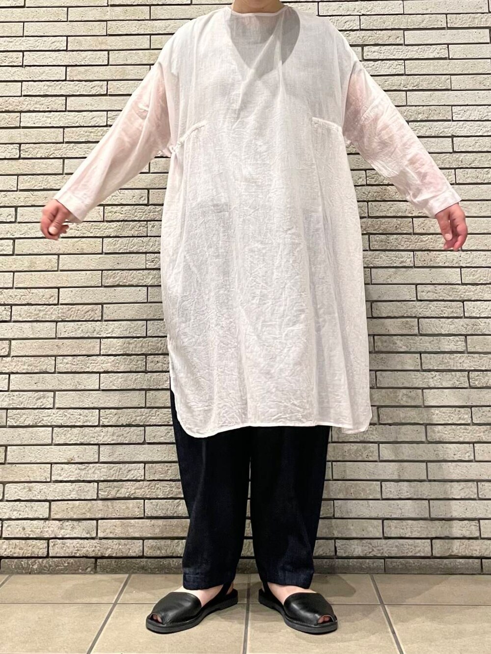 やさしいピンクの色合いが素敵なチュニックです。透け感がきれいなコットンボイルは、軽くて着心地の良い1着です。長袖ですが生地が薄いので重たい印象にならず、長く着まわしがききます◎