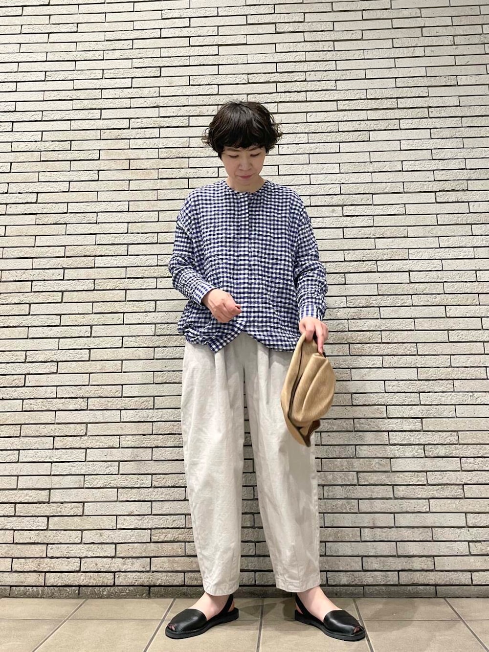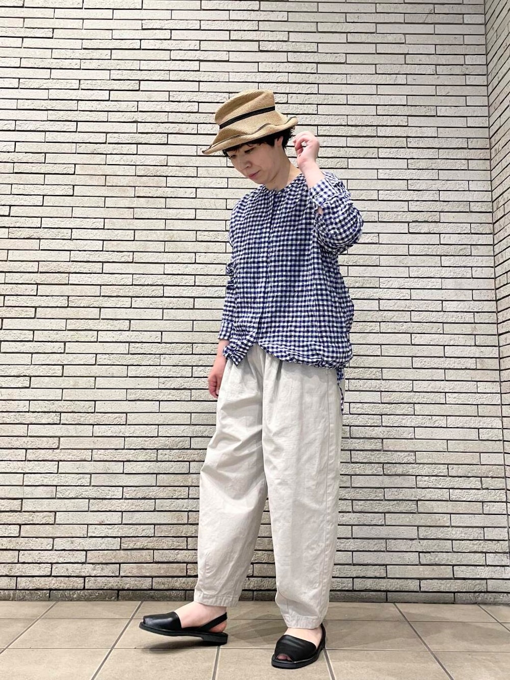 気温差がある日はサッと羽織れるシャツがあると重宝します。かぐれのチェックシャツはサラサラとした肌触りで着やすい1着です。これからの季節には日よけや冷房対策として◎