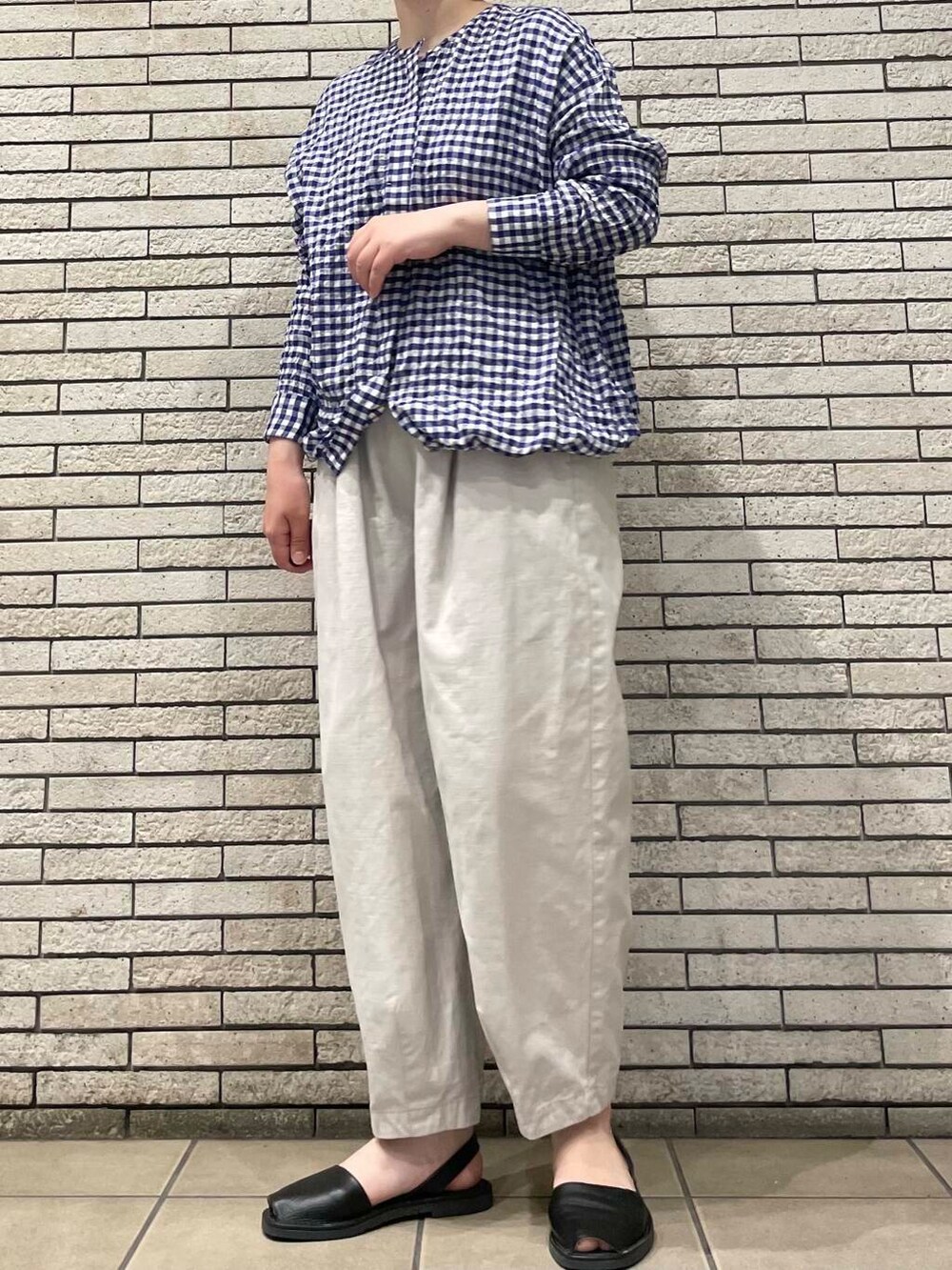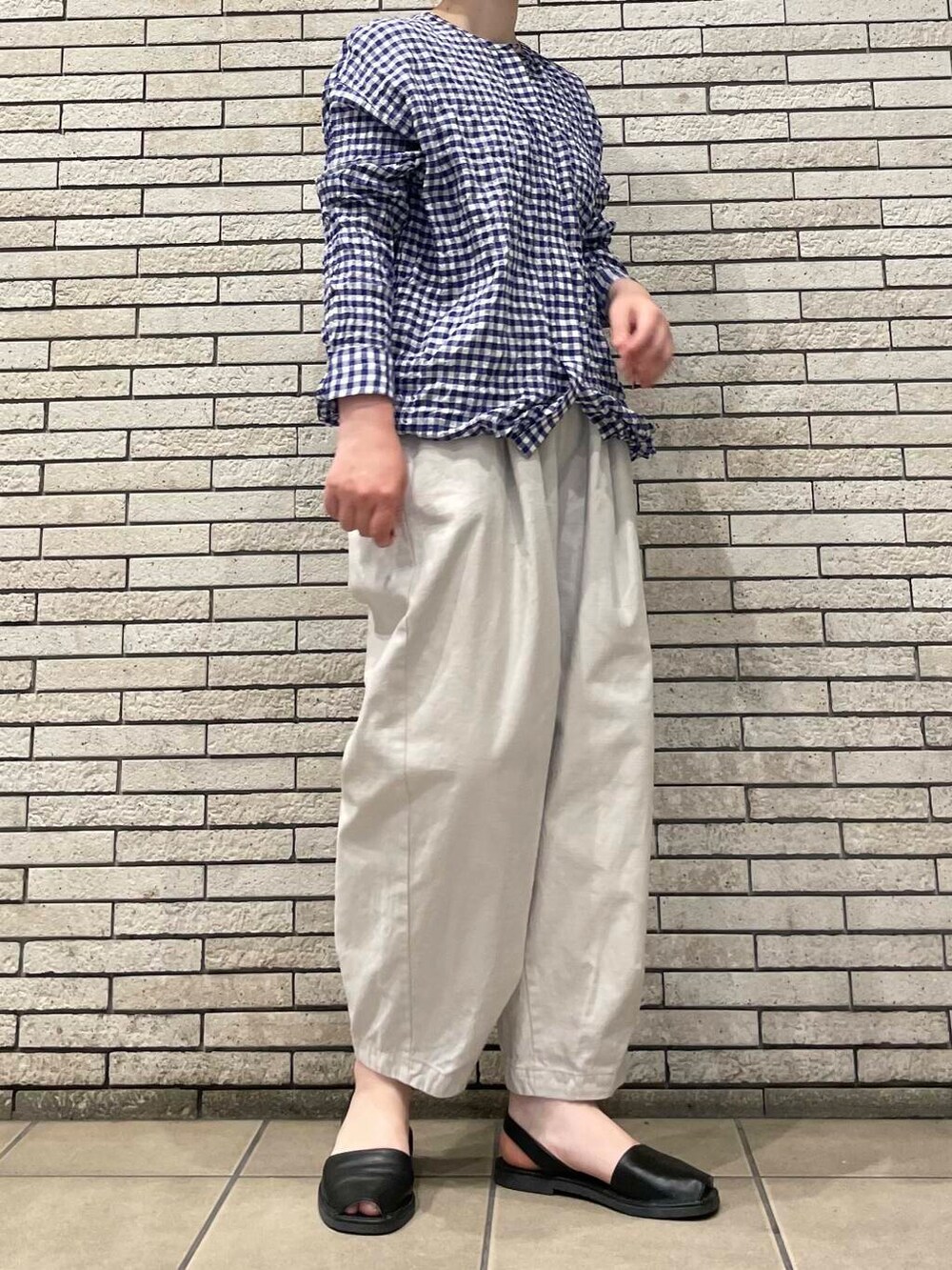 コンパクトなクルーネックが上品な印象です。チェック柄が大きすぎず、大人も着やすい色合いです。裾には紐が通してあるので、ブラウジングが可能です。ちょっと裾を絞って着るのもかわいいです。シンプルなボトムと合わせるだけでスタイリングが完成します!