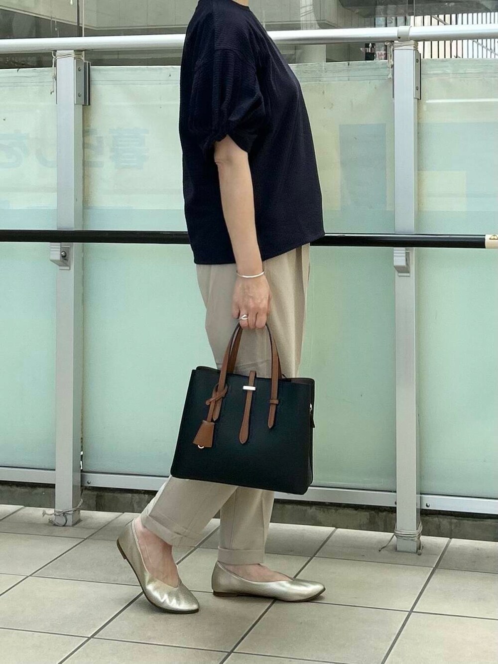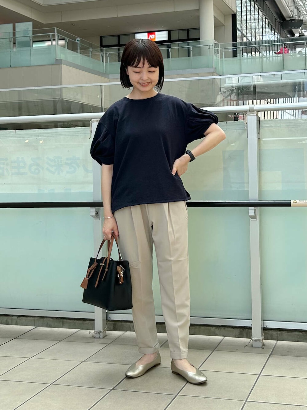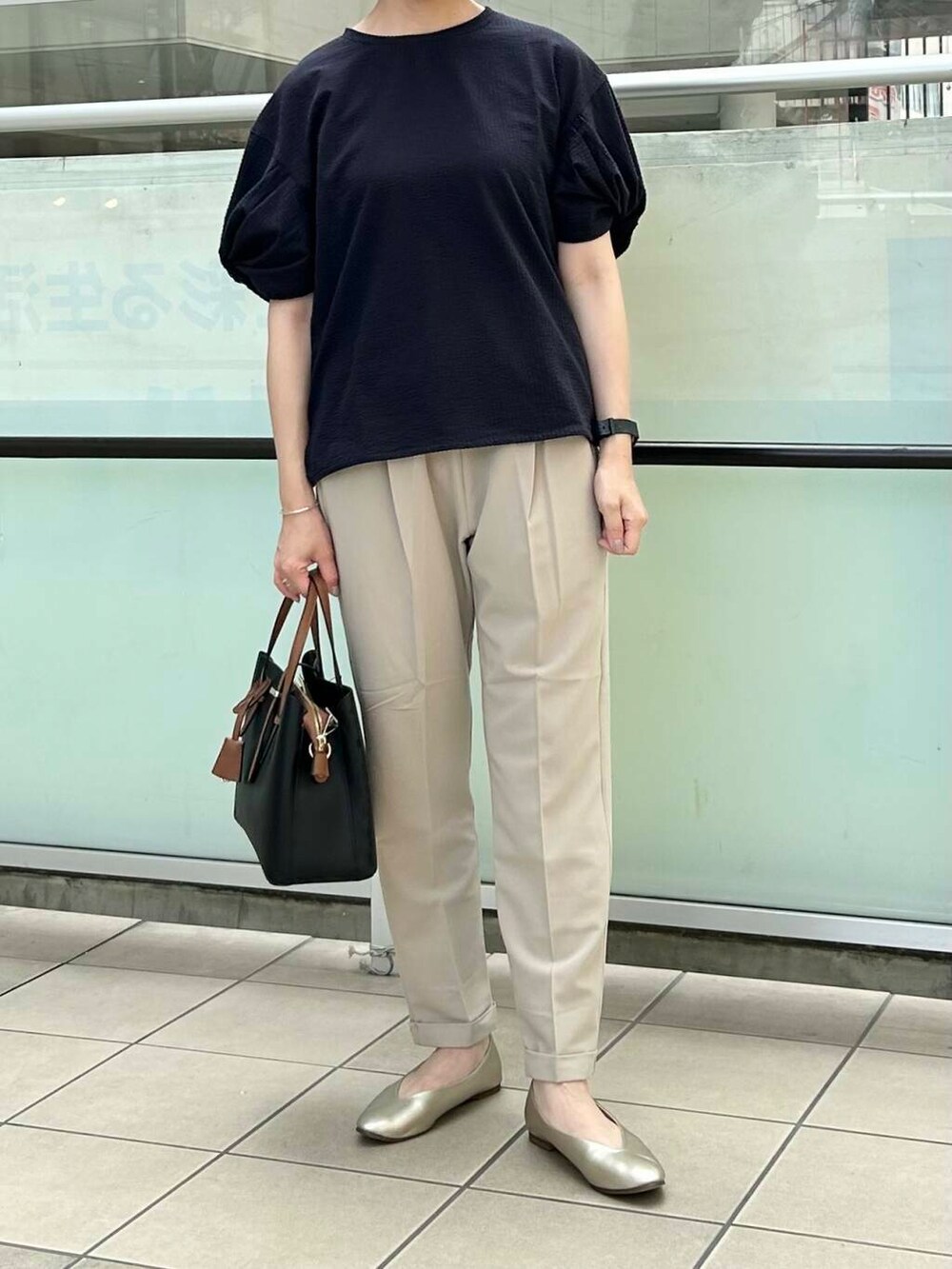 ボトムはキレイ目スタイルにオススメなテーパードパンツを合わせました。