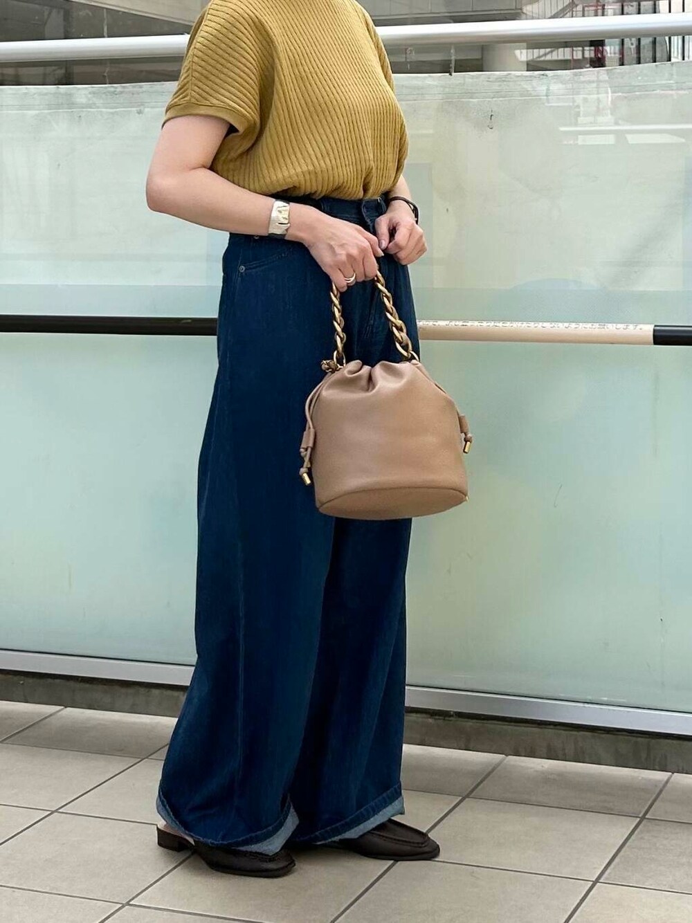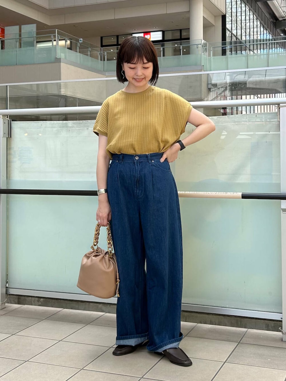 ハイウエストとワイドシルエットでバランスがとりやすくTシャツをインして着るだけでかっこよく決まります^ ^