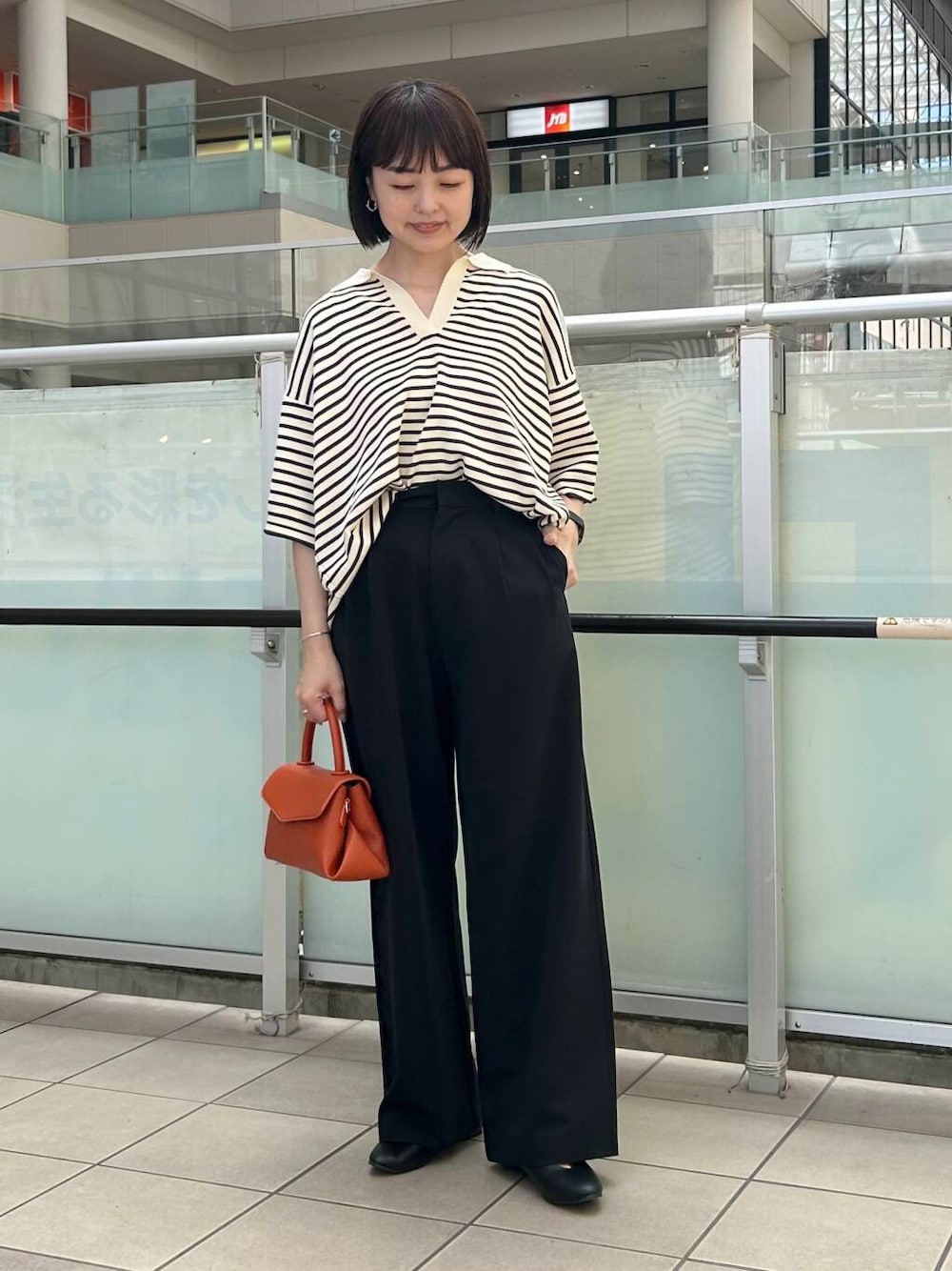 今回はキレイ目なワイドパンツと合わせました。