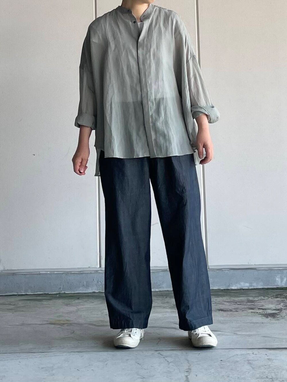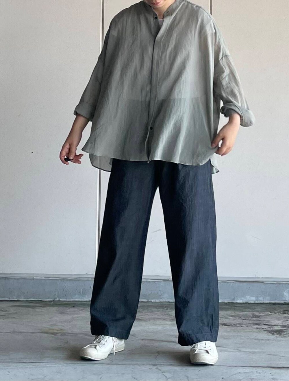 ワイドシルエットですが、広がりすぎず程よいボリュームでパンツはもちろん、ストレートシルエットのスカートも良さそうです。