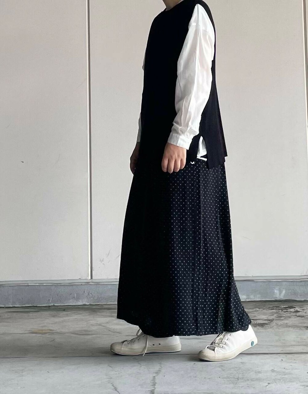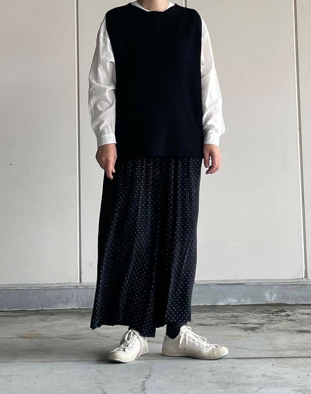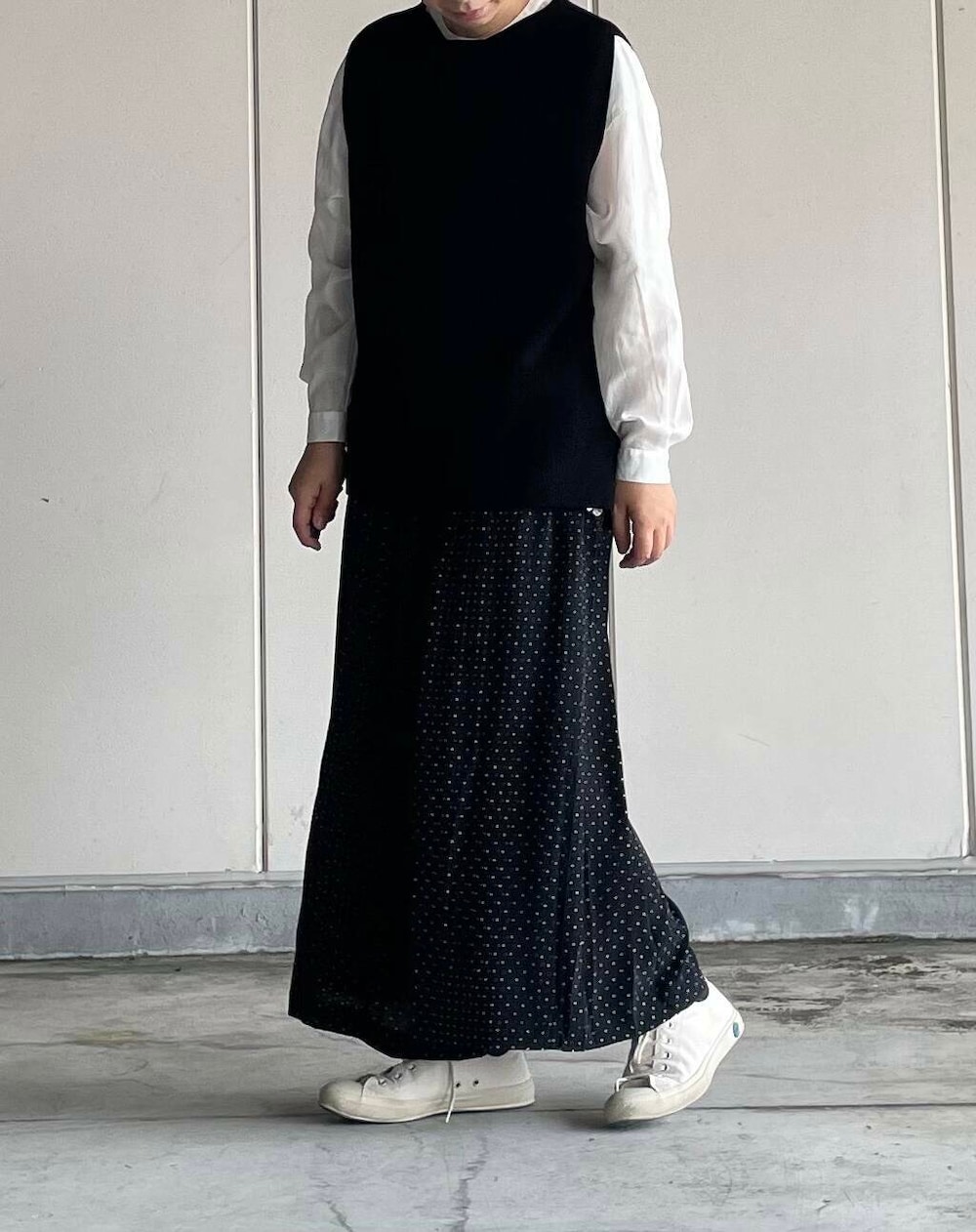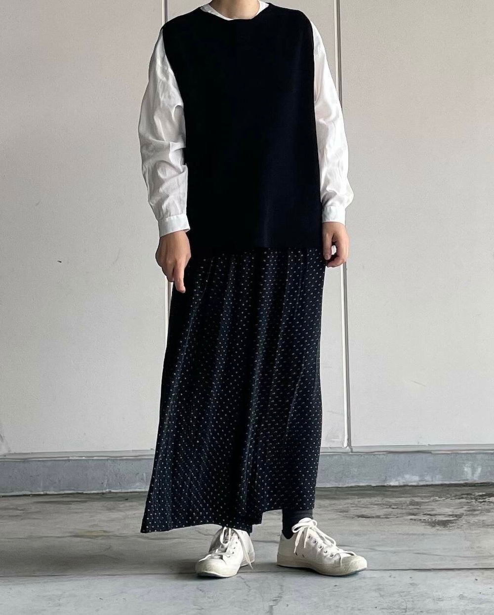 カットソーやシャツワンピースなどいろいろなアイテムと相性が良く、ロングシーズン着まわしのできる1着です。
