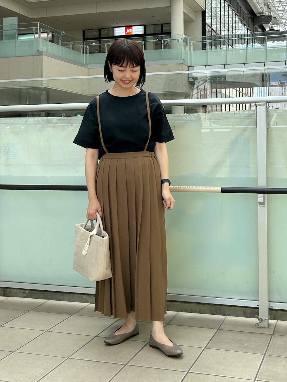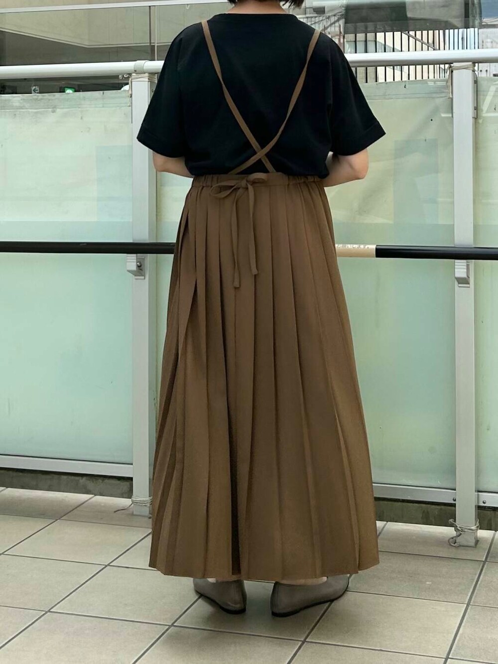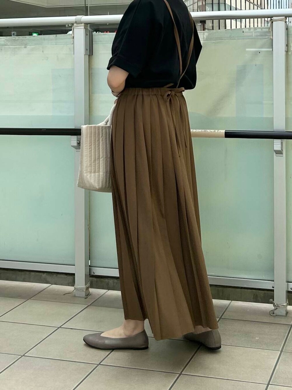 スカートをポイントにしたかったのでトップスはシンプルにTシャツを合わせました。