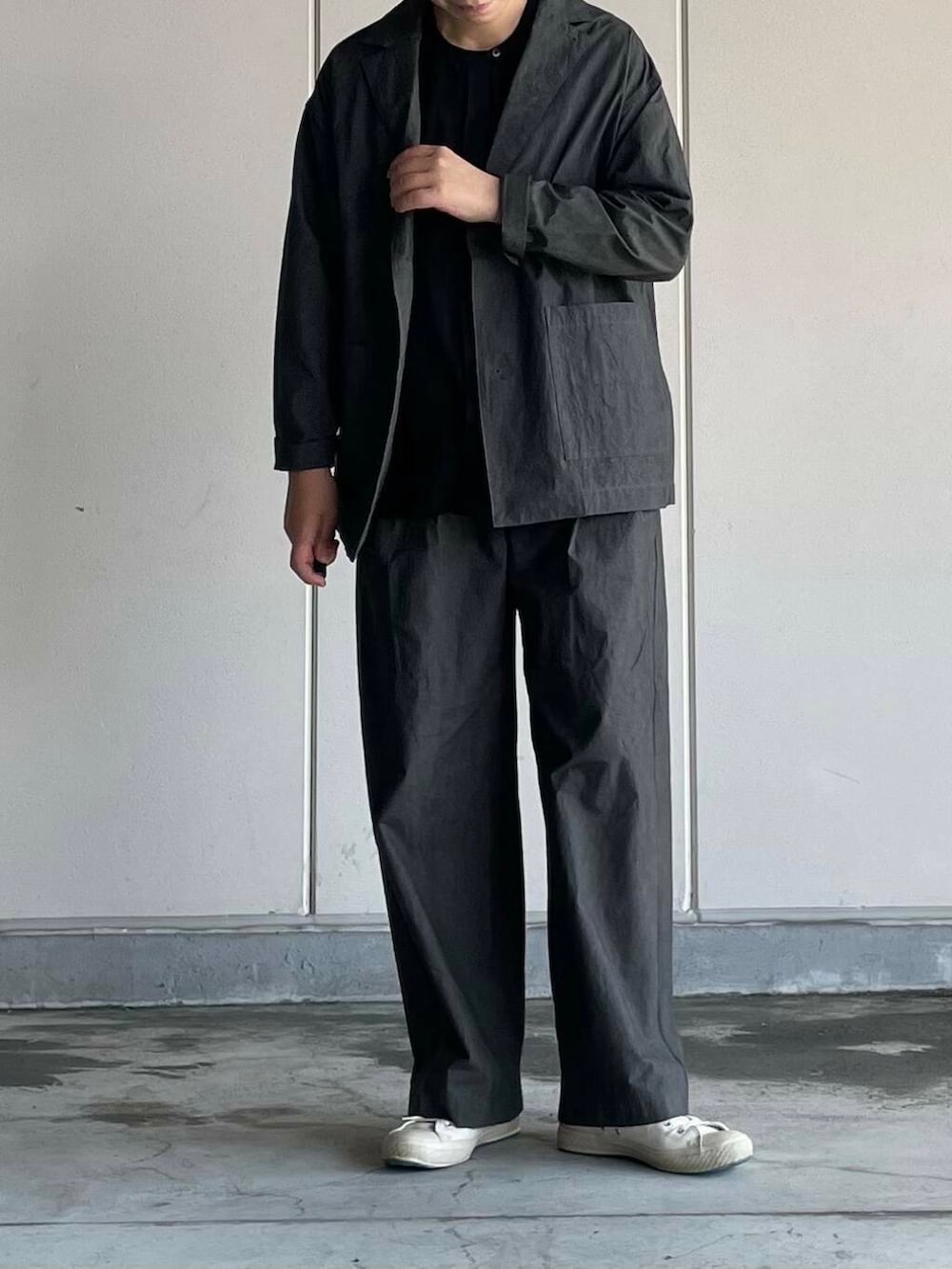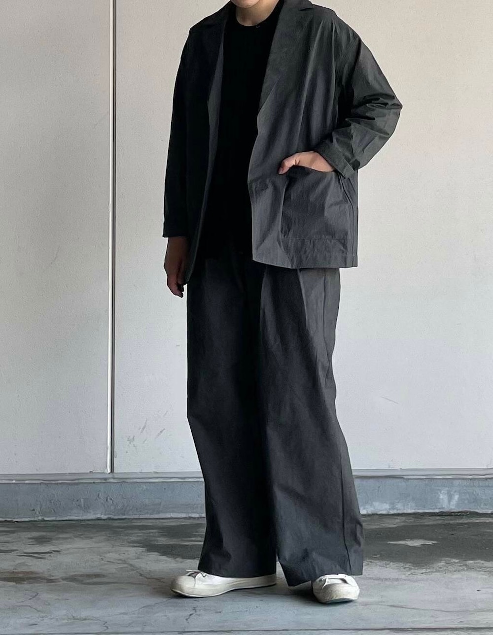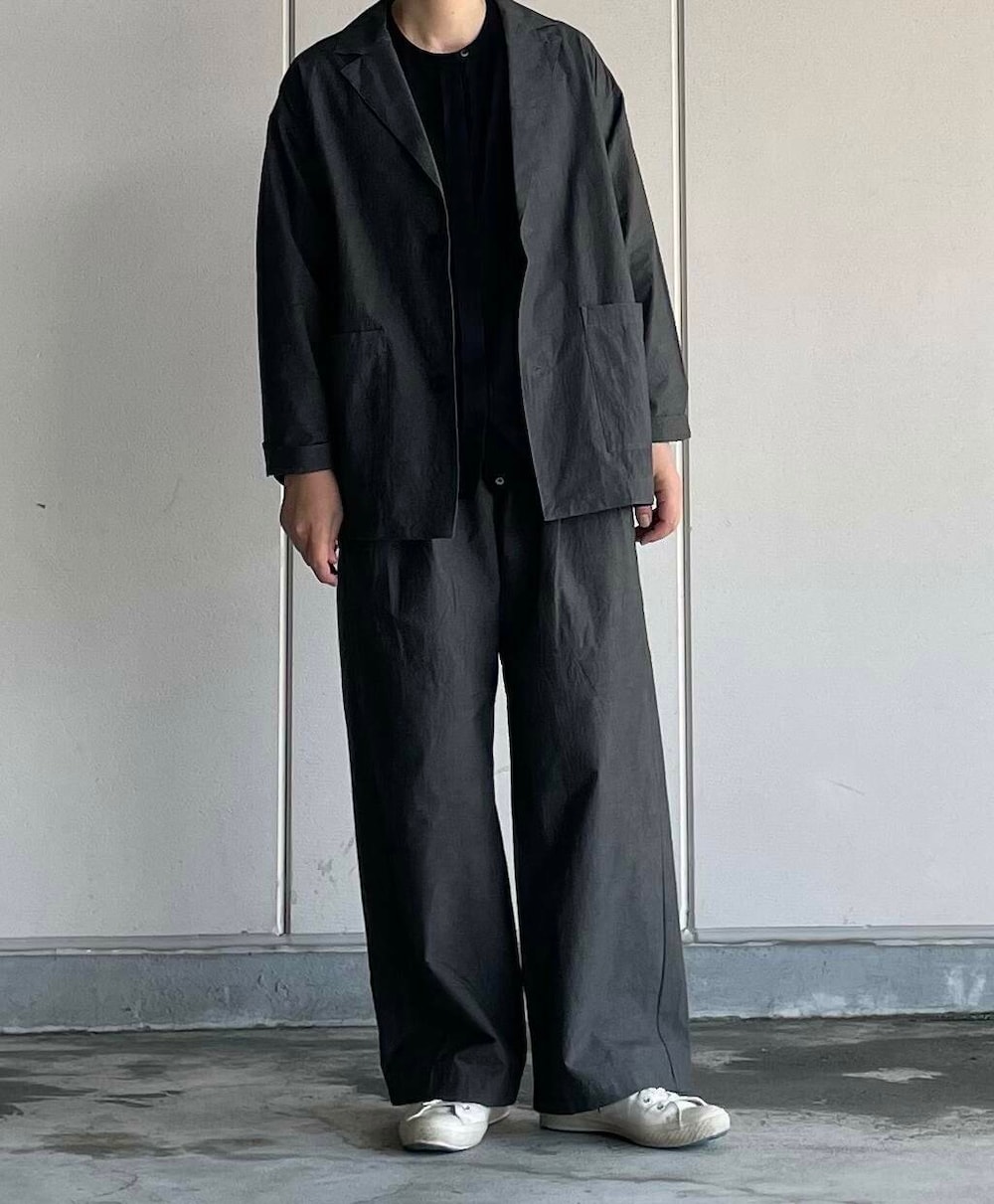 ジャケットはさっと羽織るだけで存在感のある着こなしに仕上がりに。