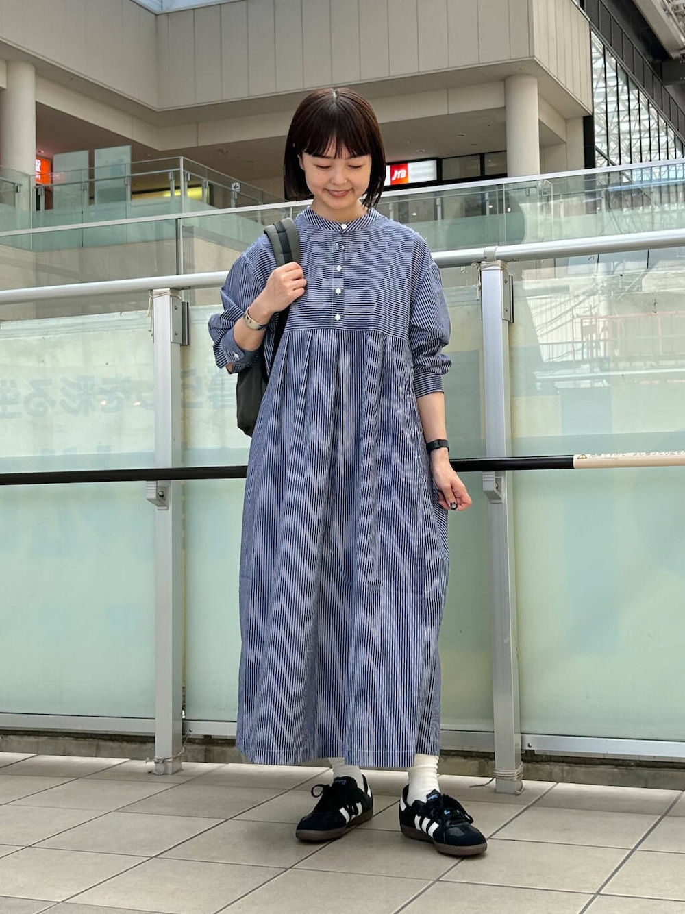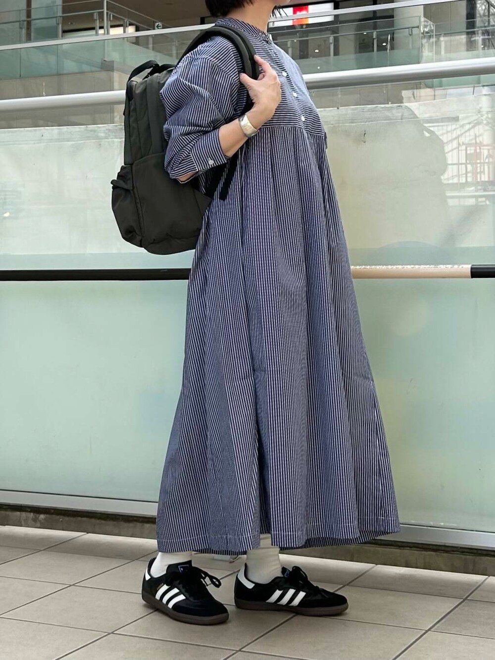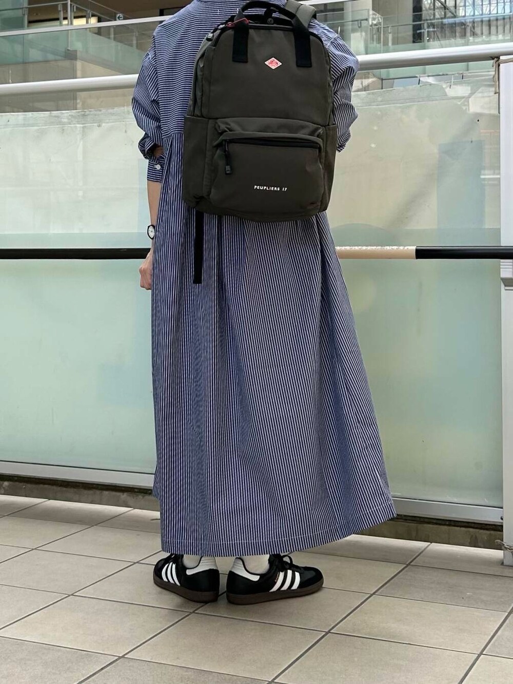 スニーカーとリュックを合わせて動きやすいスタイルにしました