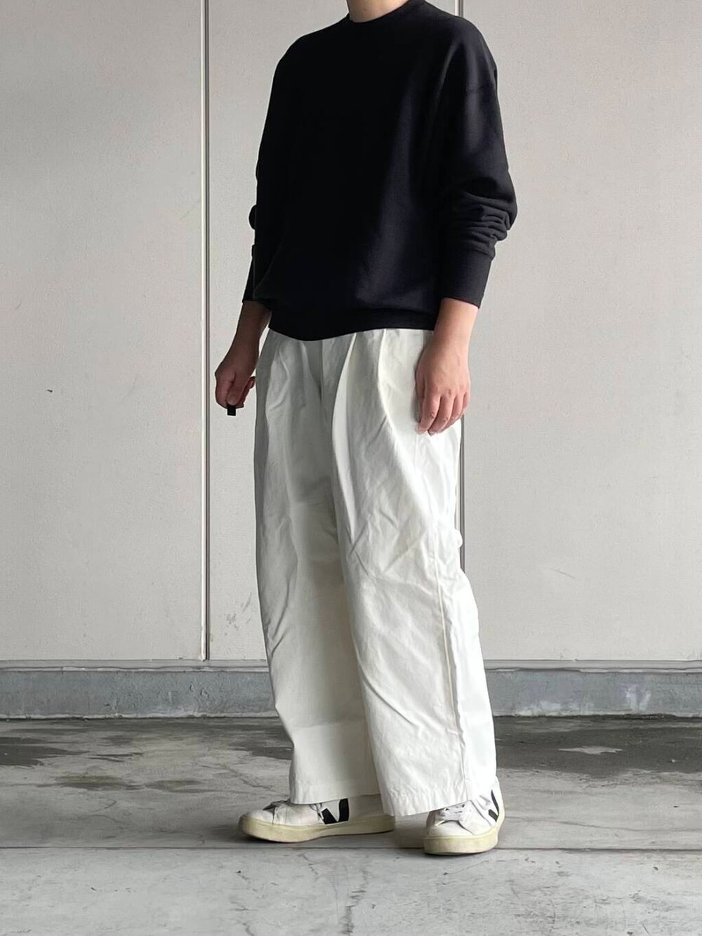 ゆるっとしたサイズ感ですが、カジュアルになりすぎません。