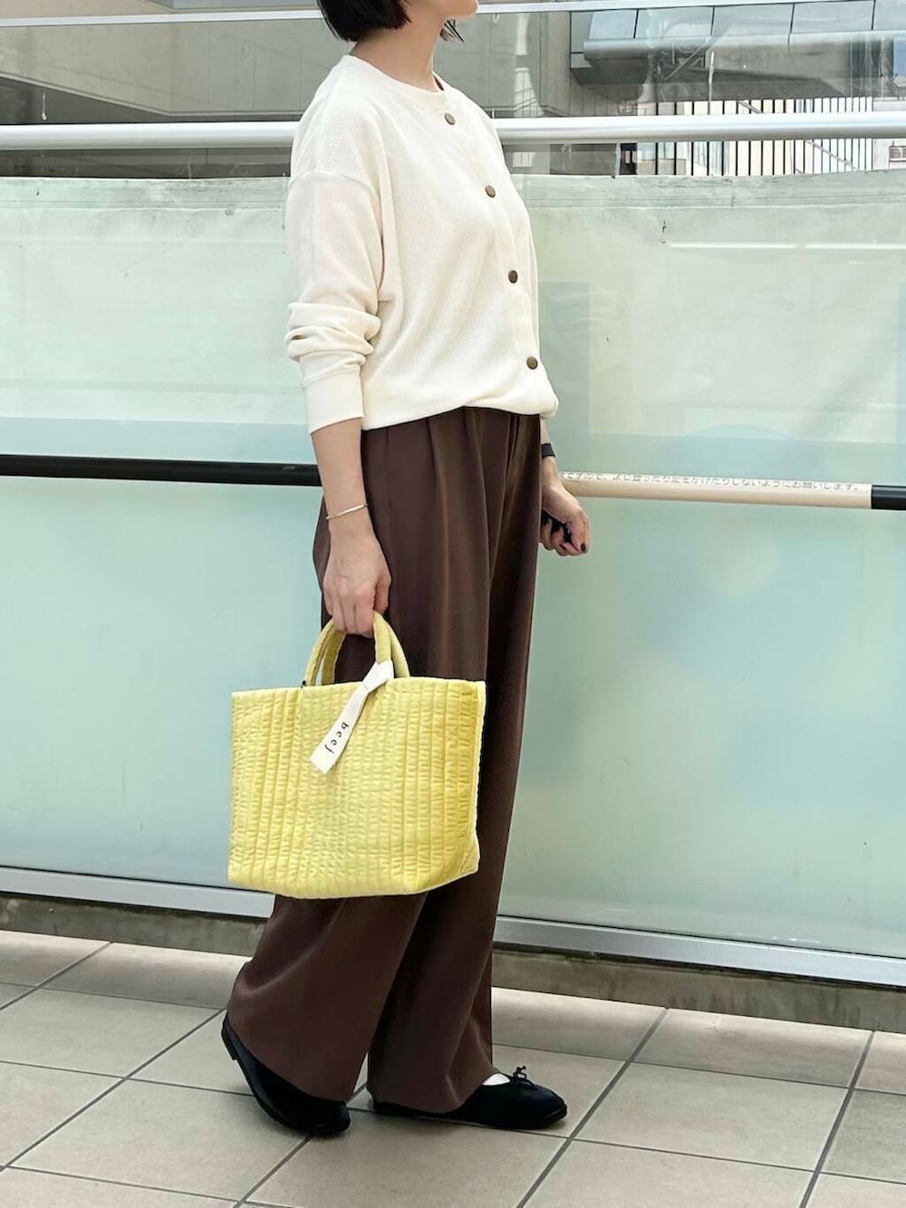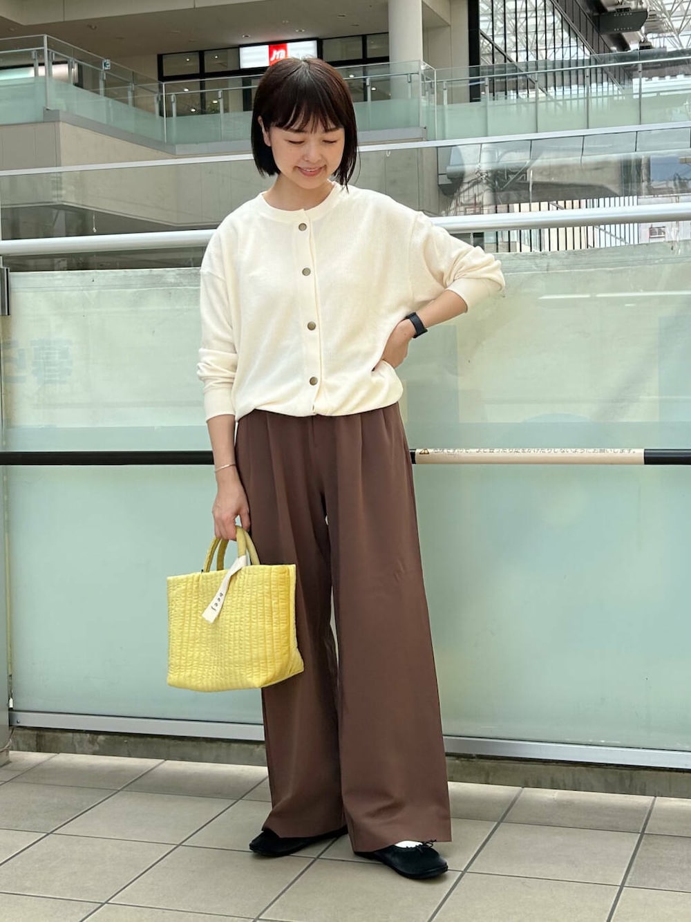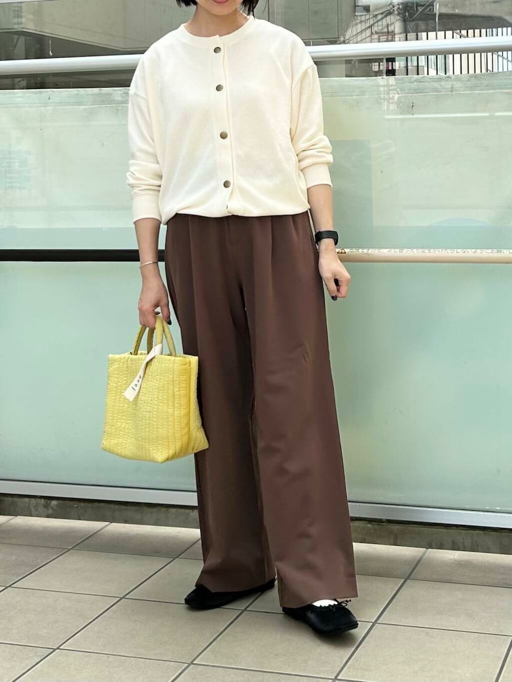 ボトムは秋らしいブラウンのパンツを合わせました。