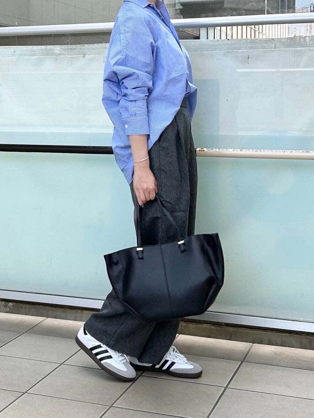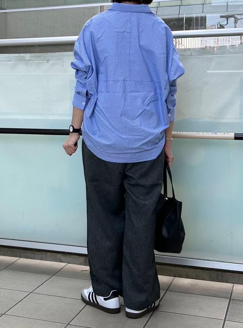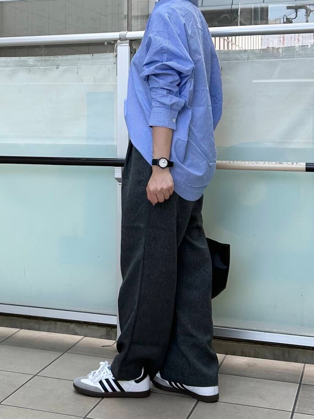 ボトムは季節感のある生地のパンツを合わせました。