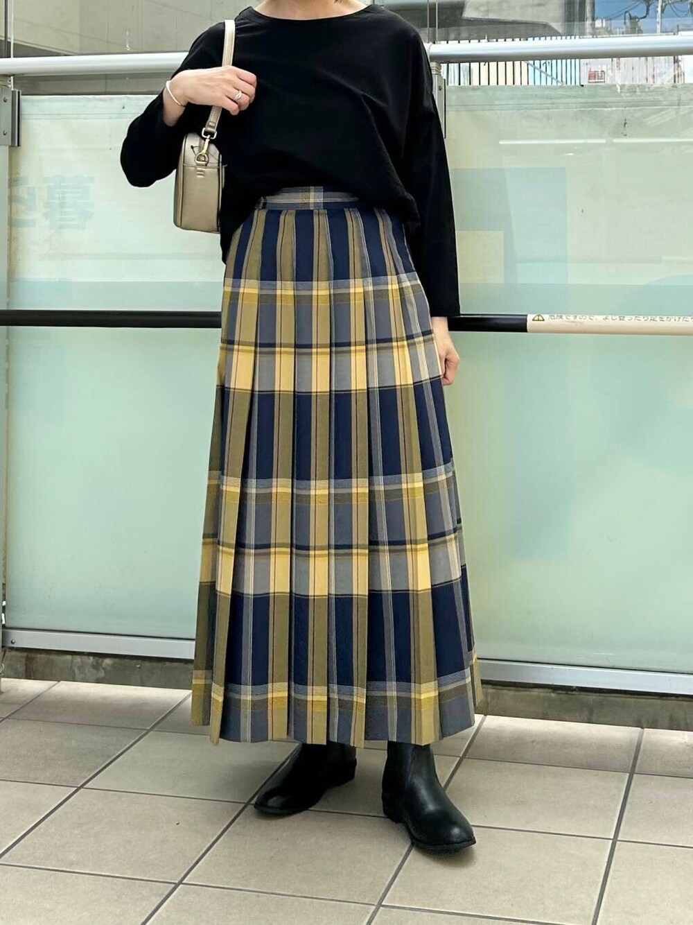 しっかりめの生地で裏地もあるので真冬まで使えるプリーツスカートです。