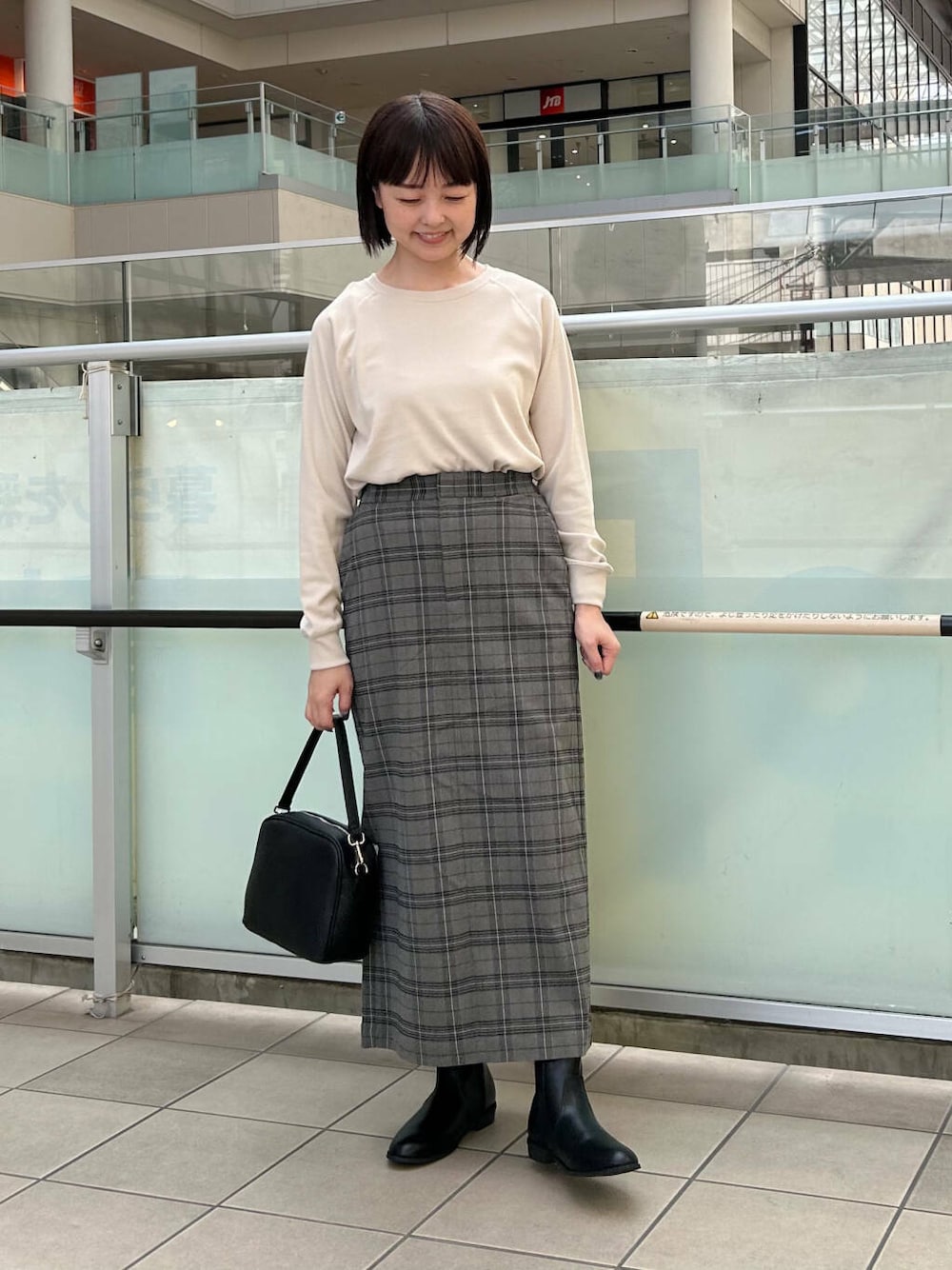 落ち着いたチェック柄のスカートはお仕事にも使えそうです。