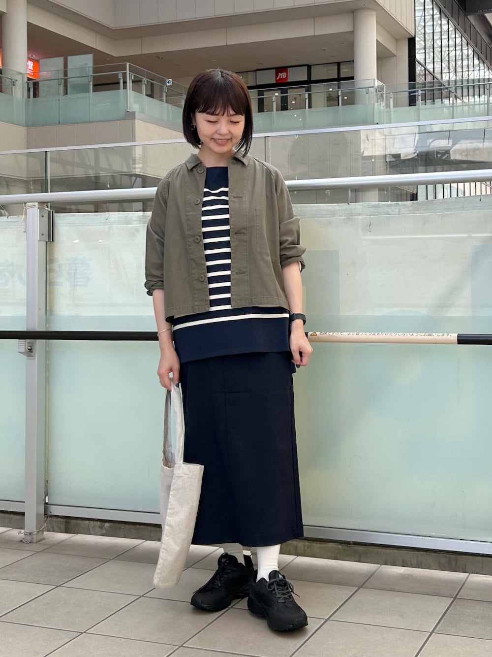 タイトスカートを合わせてスッキリとしたシルエットにしました。