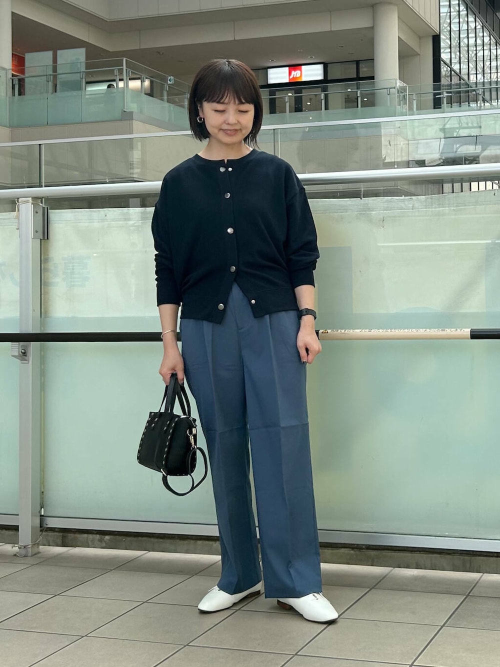 シワが気にならない柔らかい生地のカーディガンは季節の変わり目にあると便利ですね。