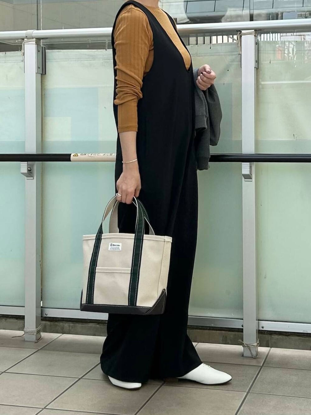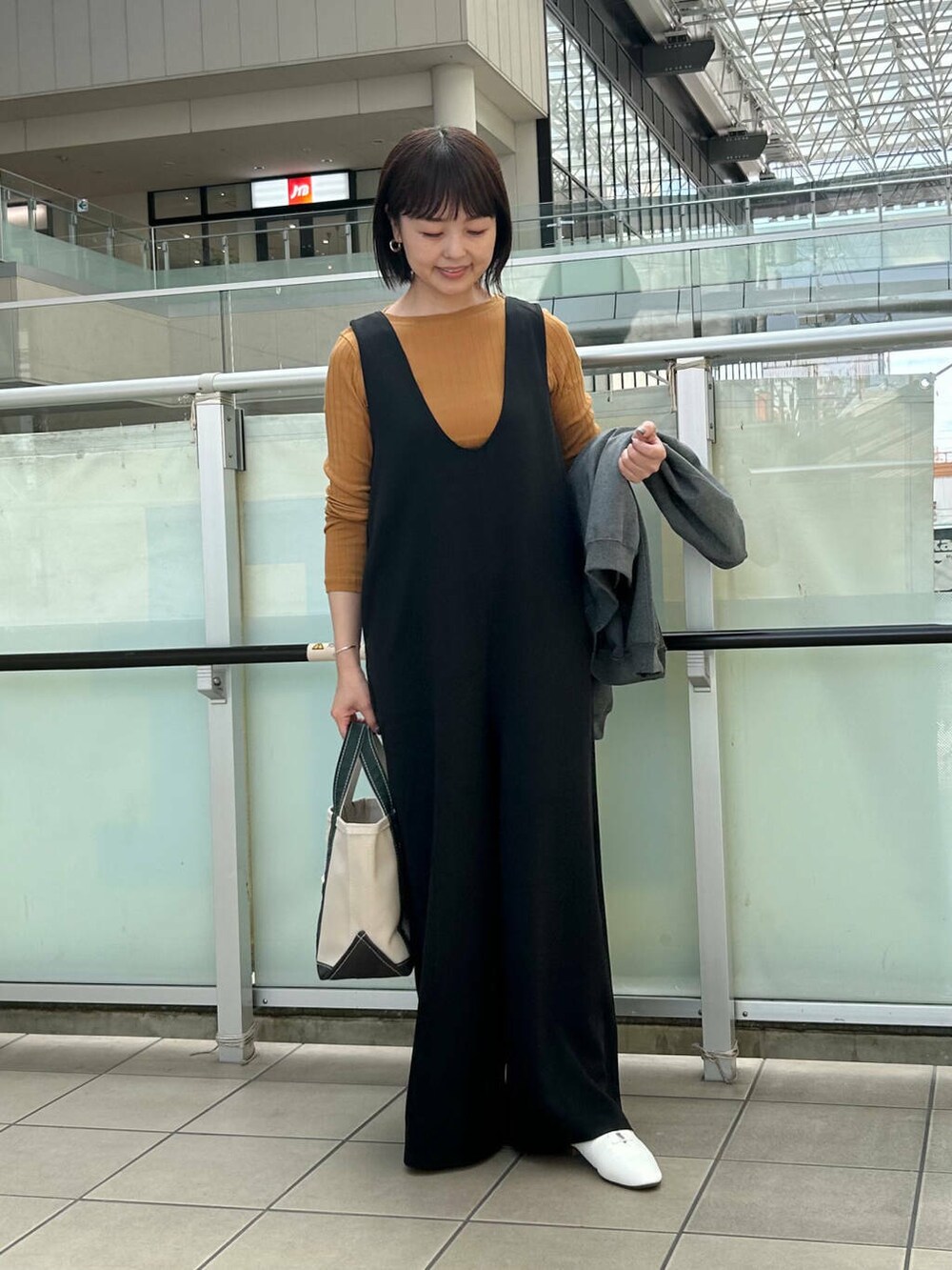 サロペットはてろっとした軽い生地ですぐに着られます。