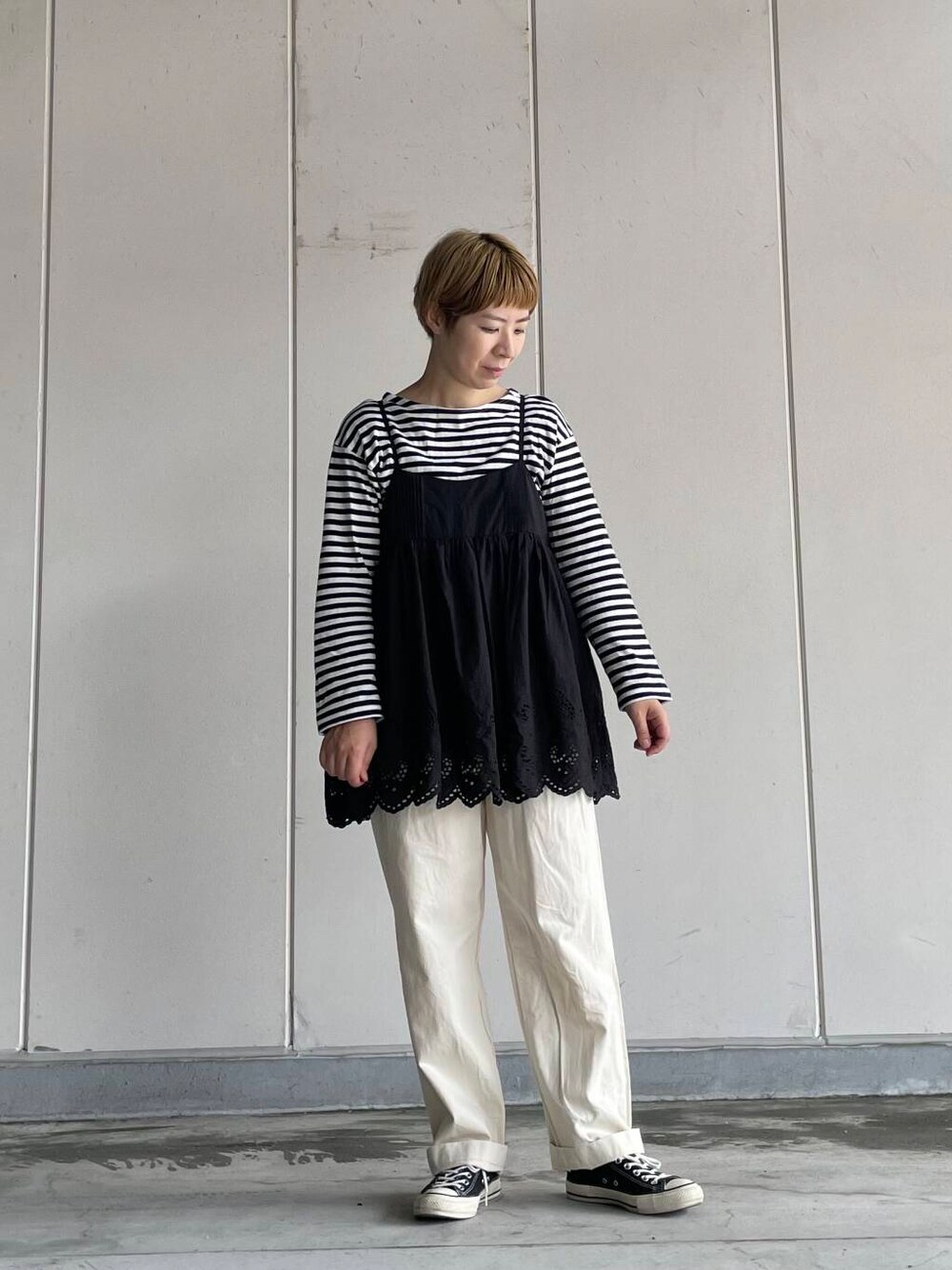 肩紐で着丈の調節が可能なデザインとなっているため、TシャツやロンT・シャツなど様々なトップスと重ねてお楽しみいただけます◎