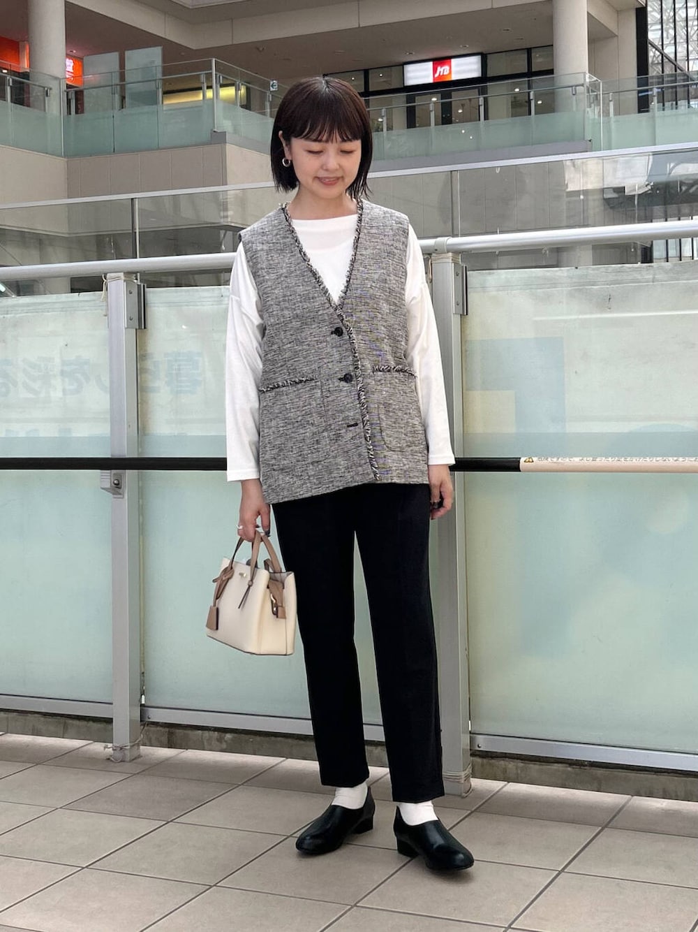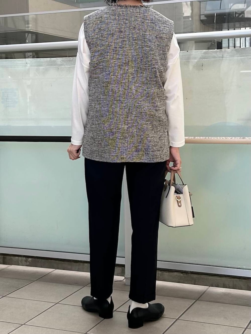 スカートやパンツ、ワンピースと何にでも羽織りやすいベストです。