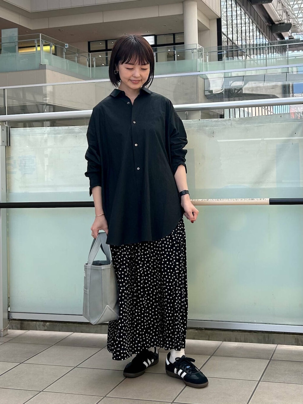 パリッとした素材感が気持ちよく、メンズライクな雰囲気になります。