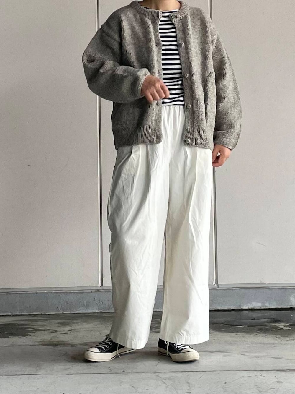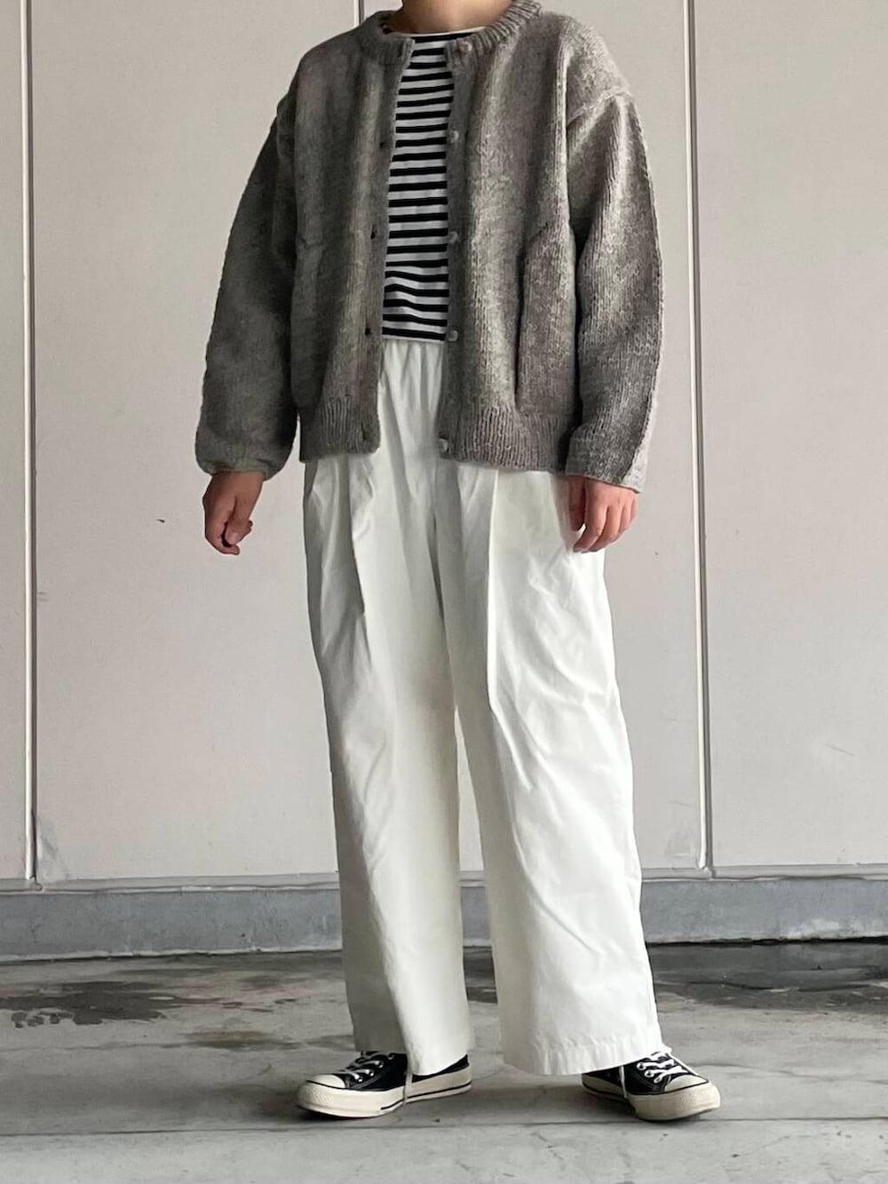 太めの糸でざっくり編み上げられたカーディガン。羽織るだけでナチュラルな雰囲気を演出してくれます。