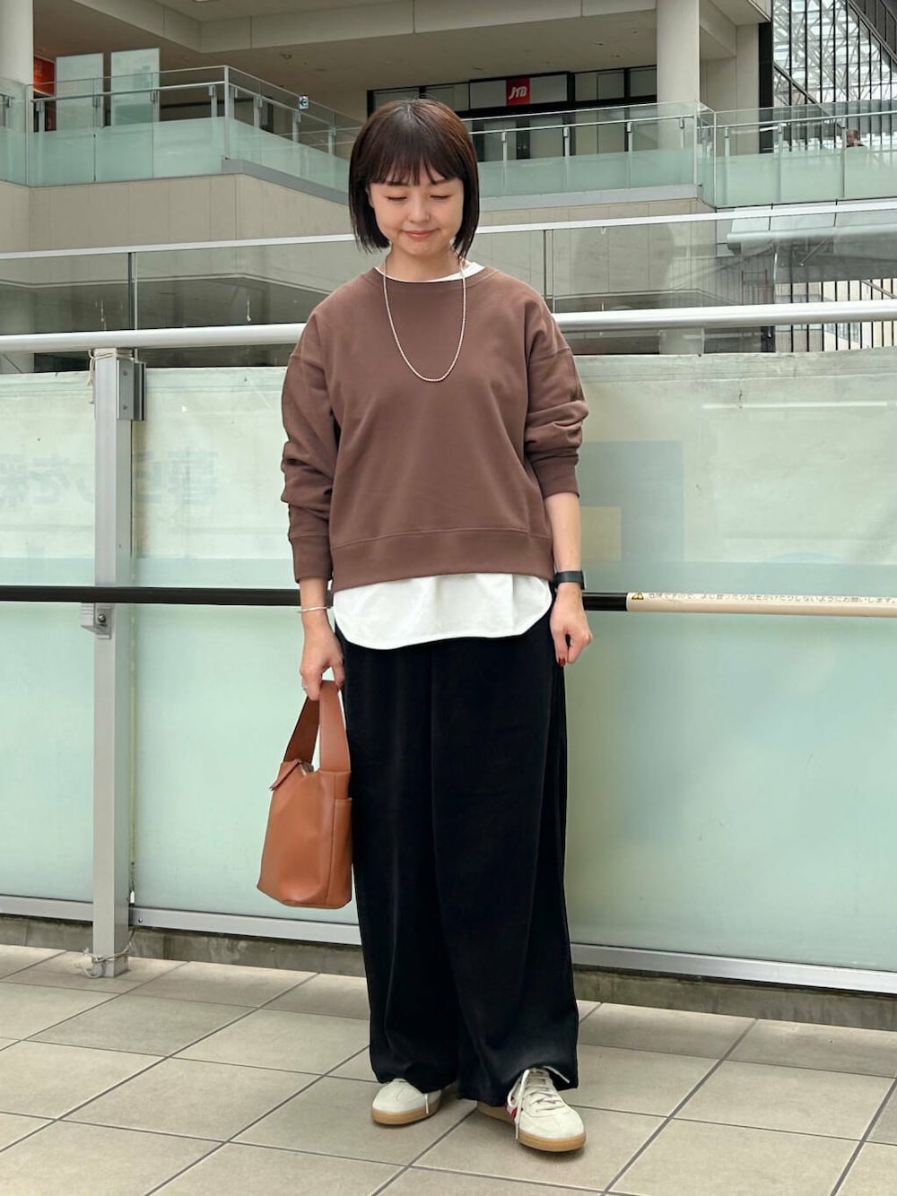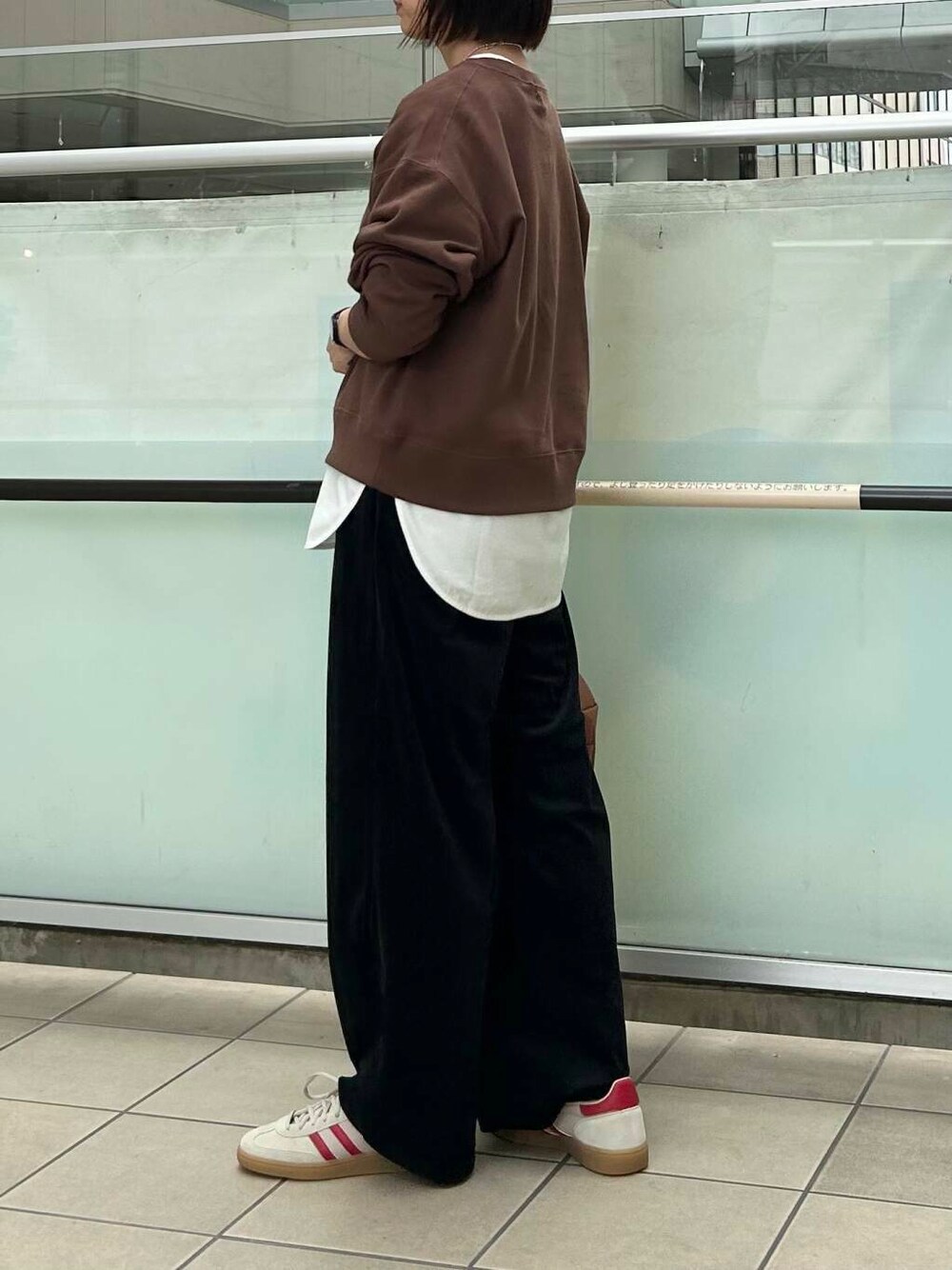 今回はボトムもゆったりとしたものを合わせてラフなスタイルにしました。