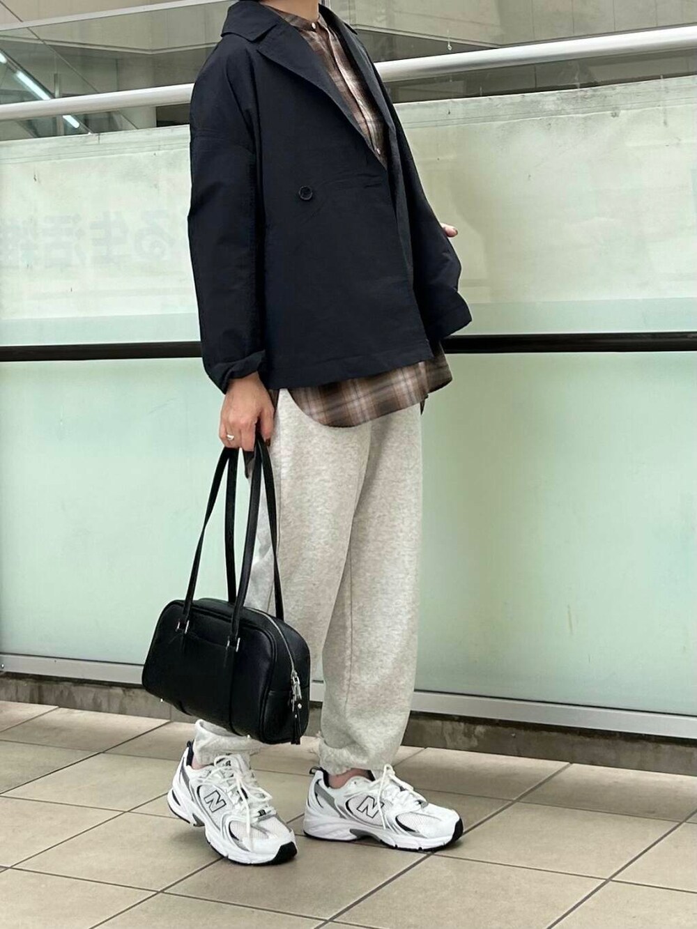 お尻周りをカバーしてくれるのでスウェットパンツやニットパンツと合わせやすいです。