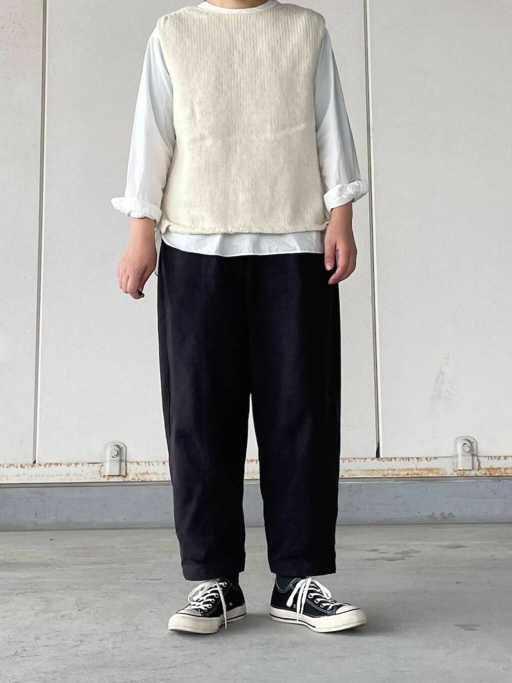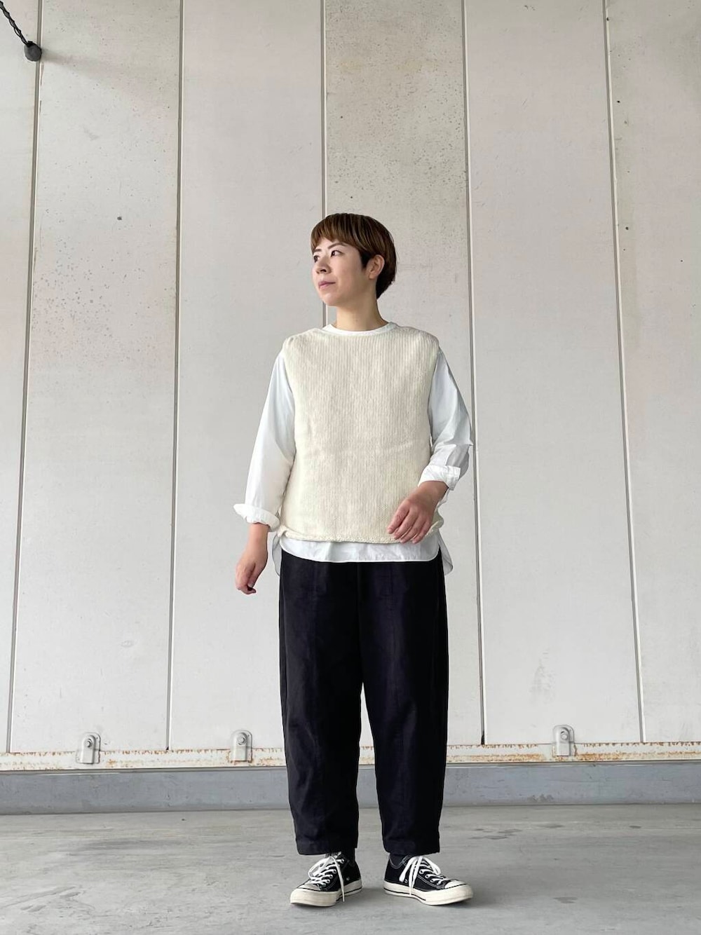 サイドにスリットが入っているため、ワンピースとの重ね着もしやすいです。