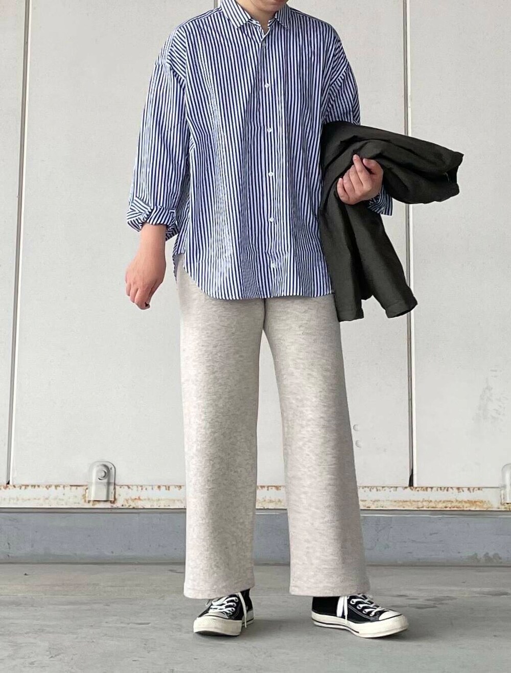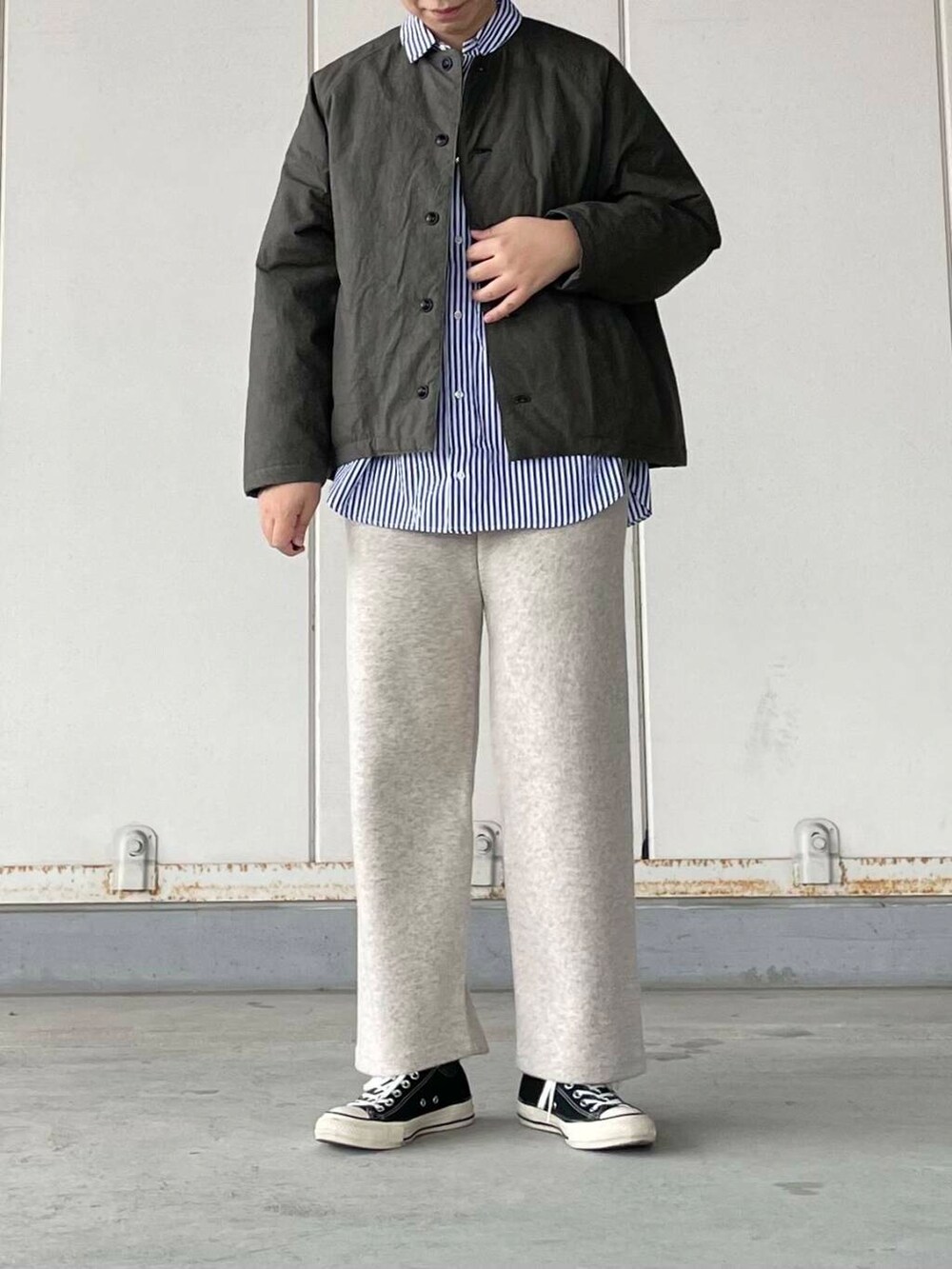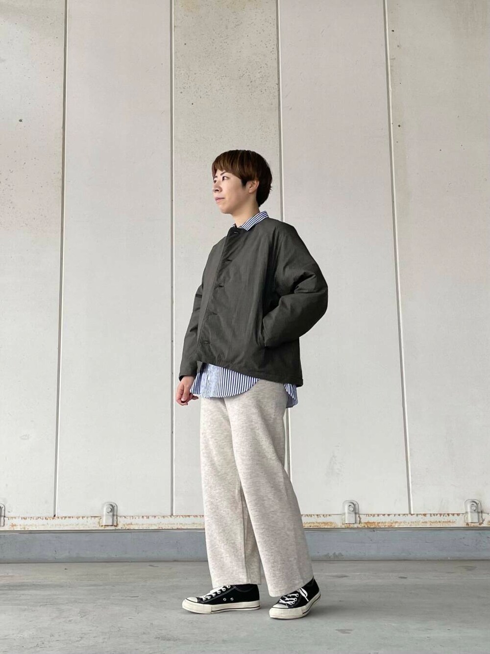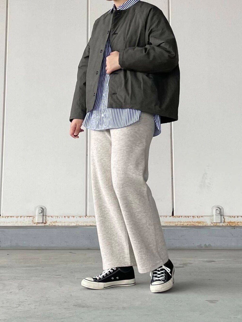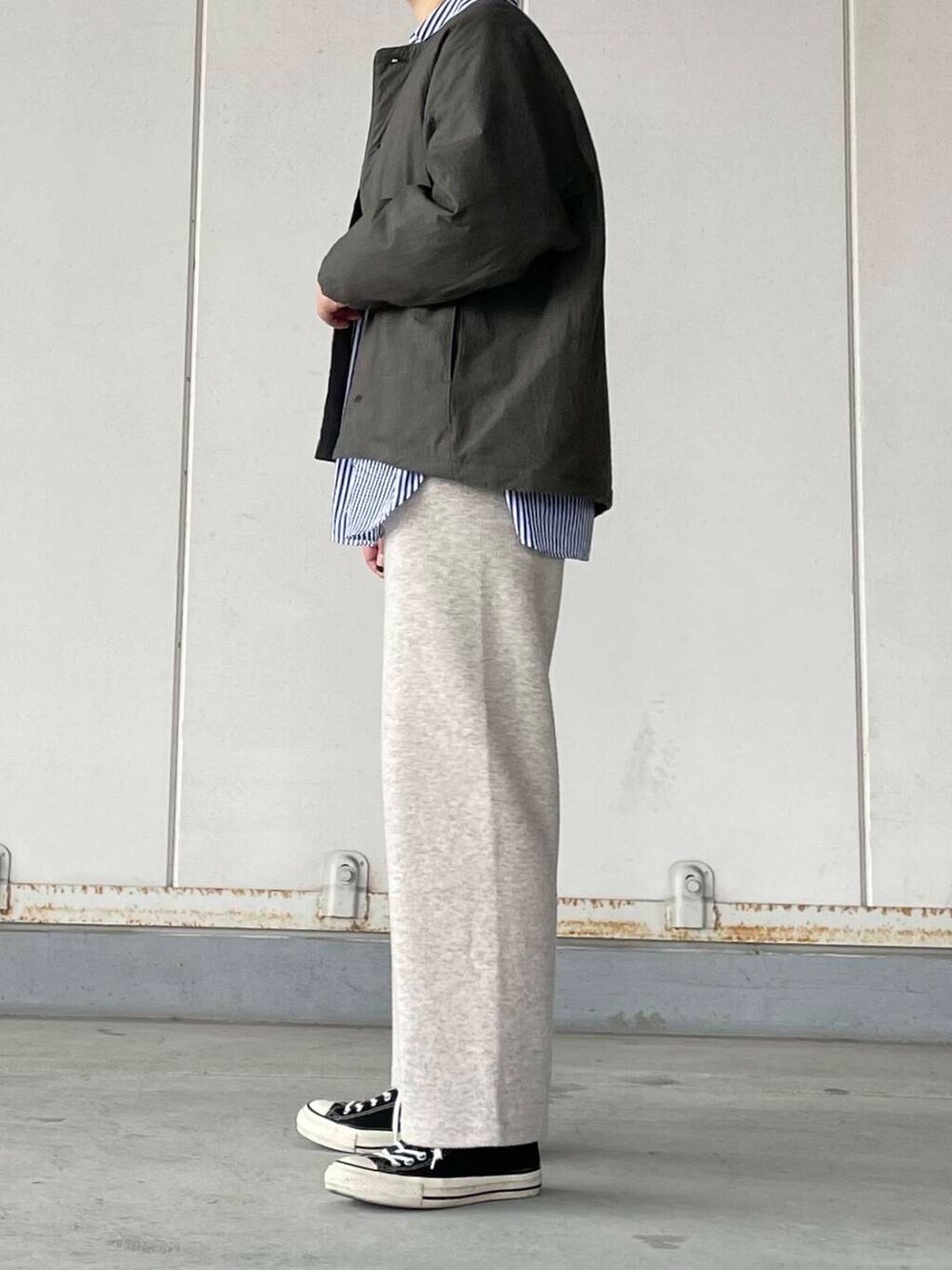 程よくゆとりがあるため、ニットなども重ねて着用いただけます。