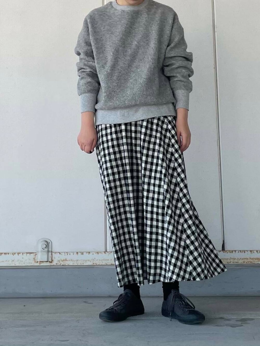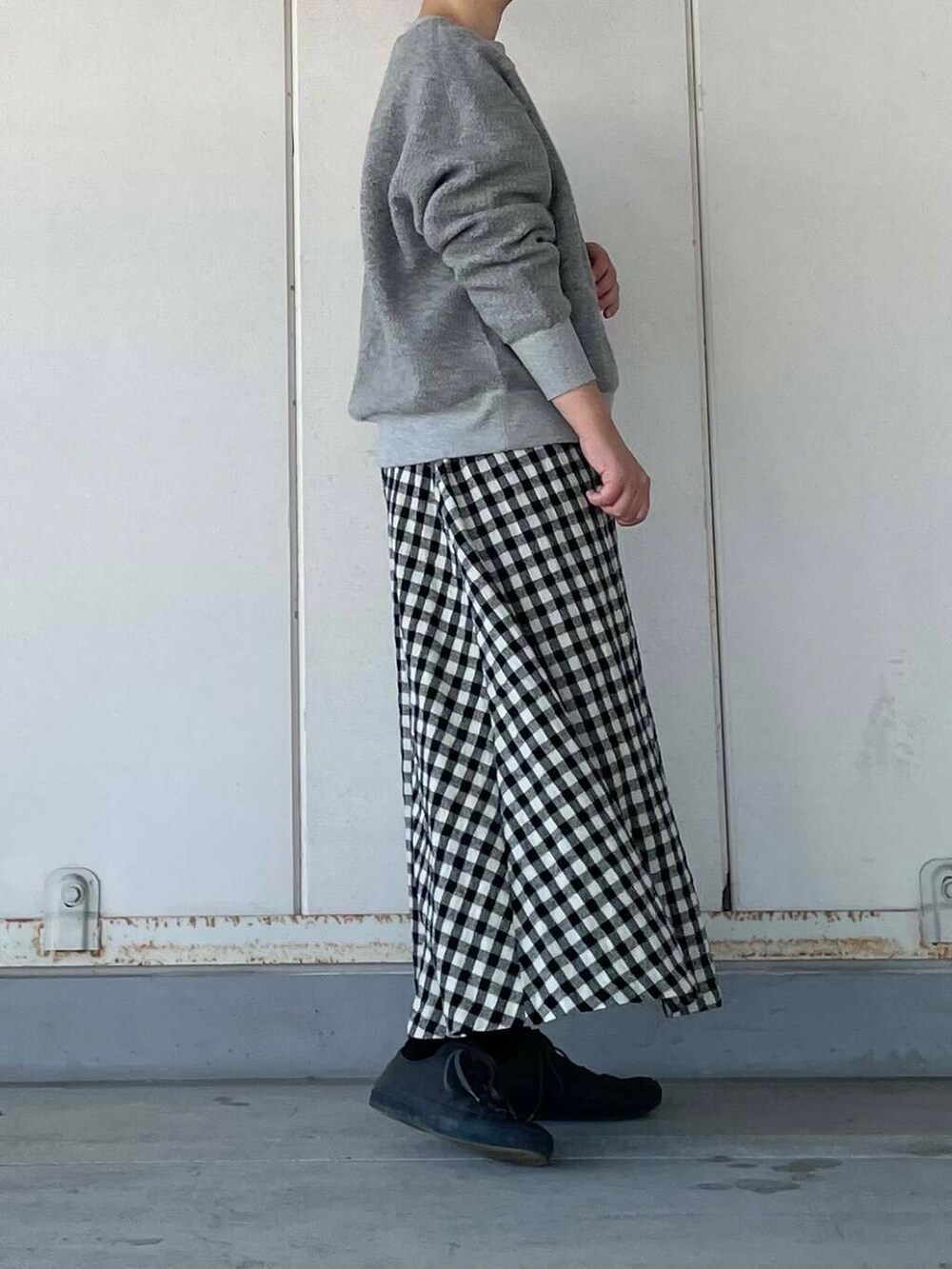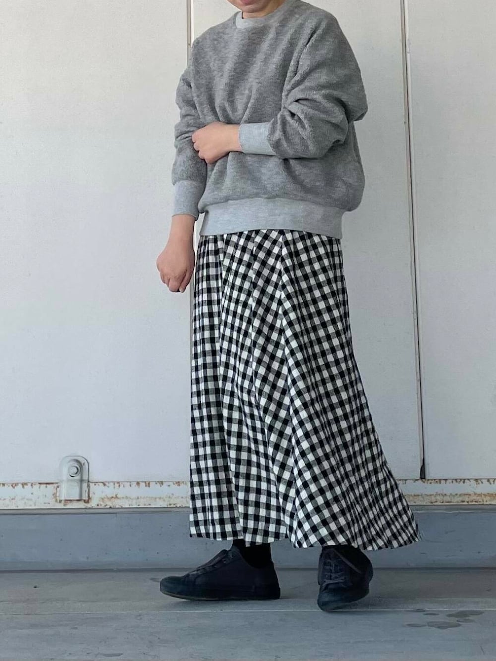 裾にかけて広がるフレアシルエットが、大人のナチュラルな装いにピッタリです◎