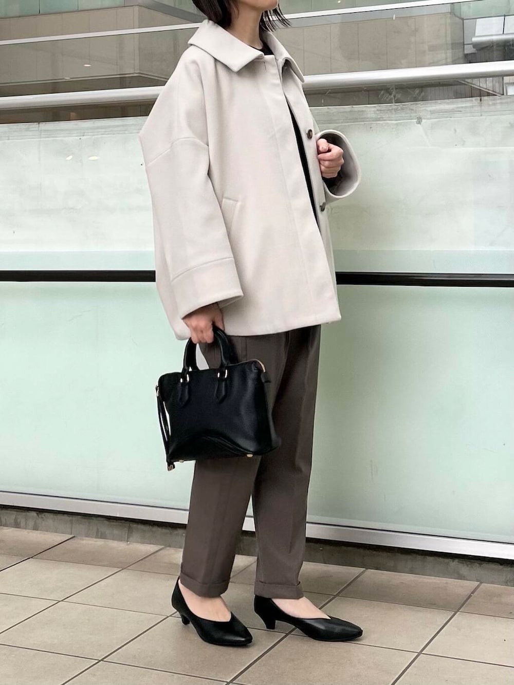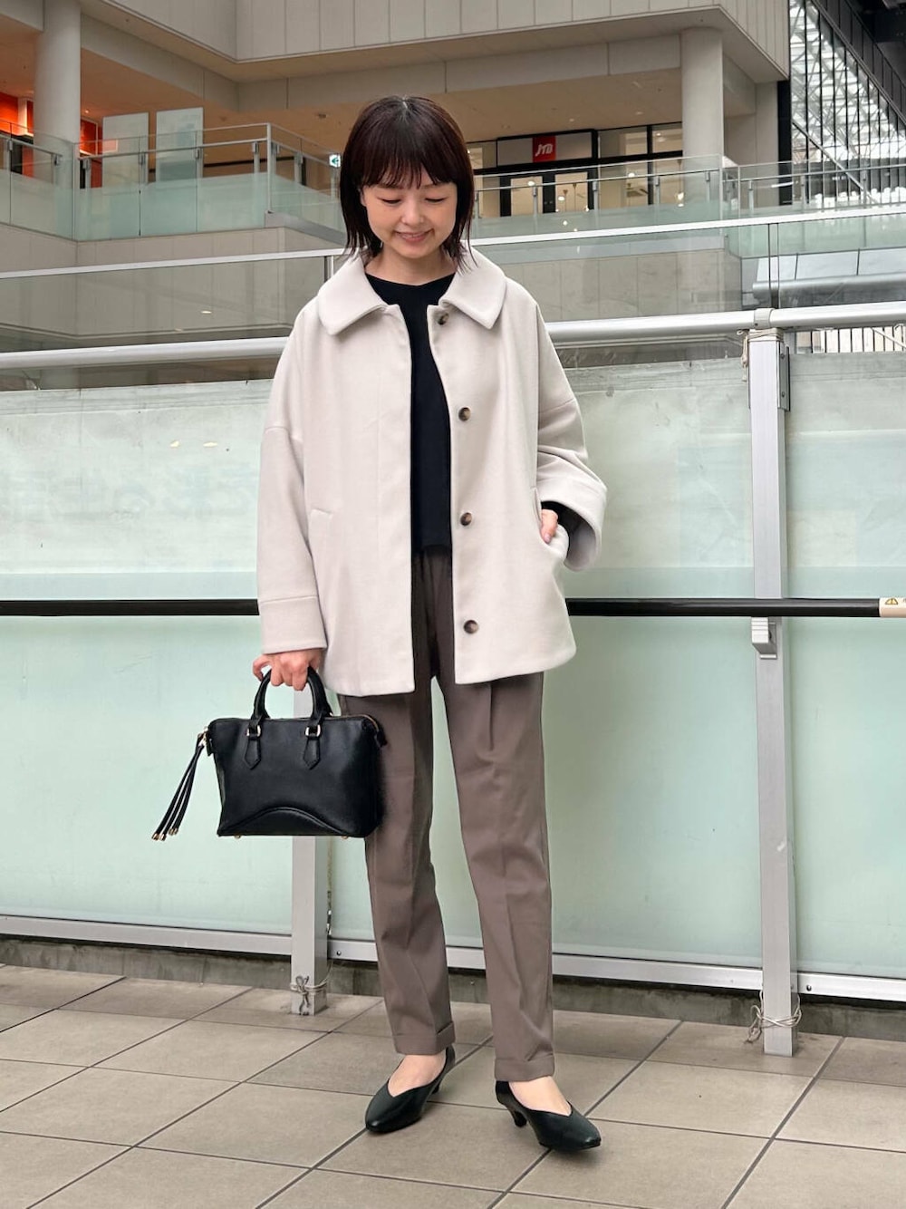 アウターは丸いシルエットがかわいく大きめな襟がクラシックな雰囲気です。
