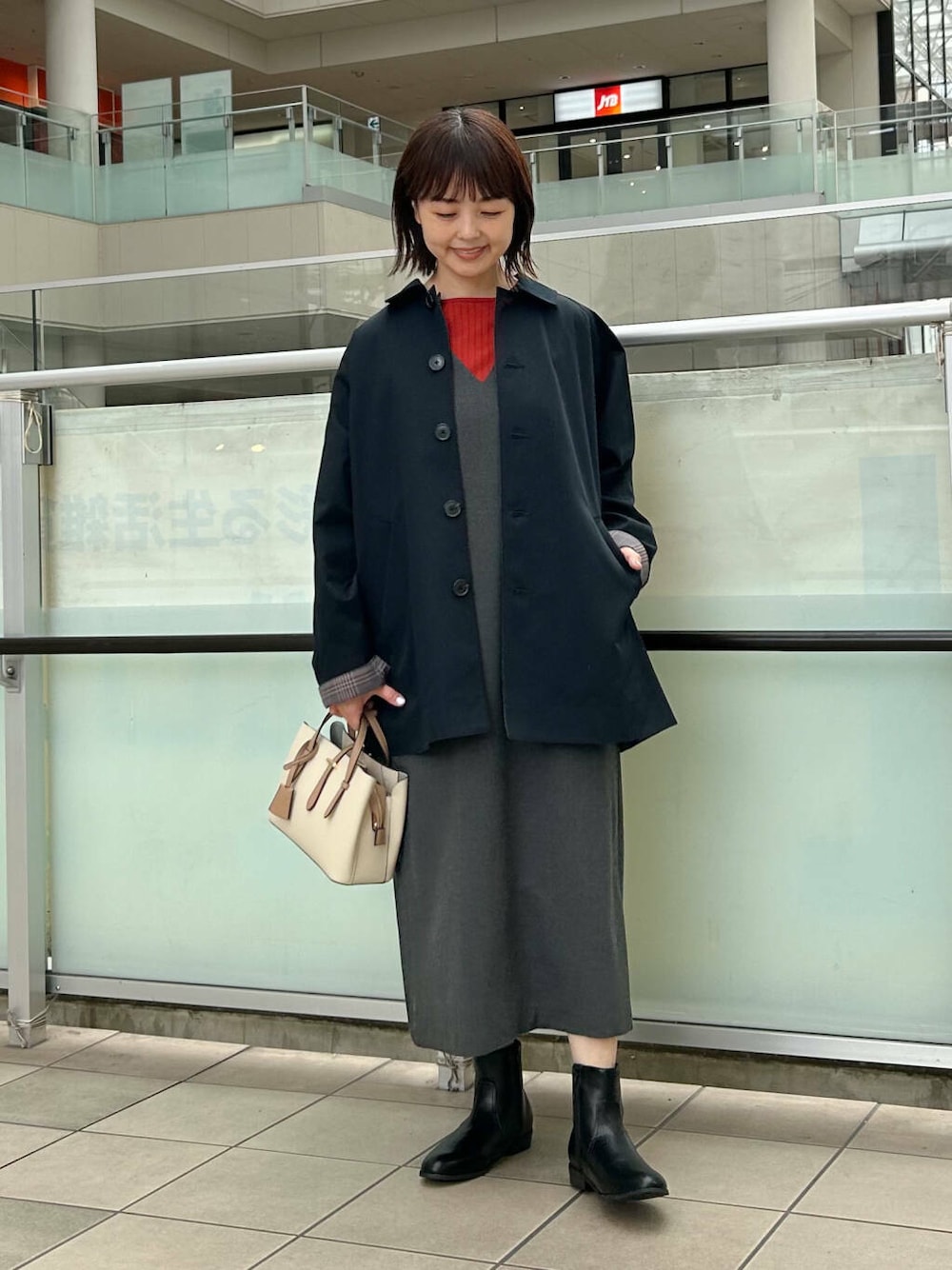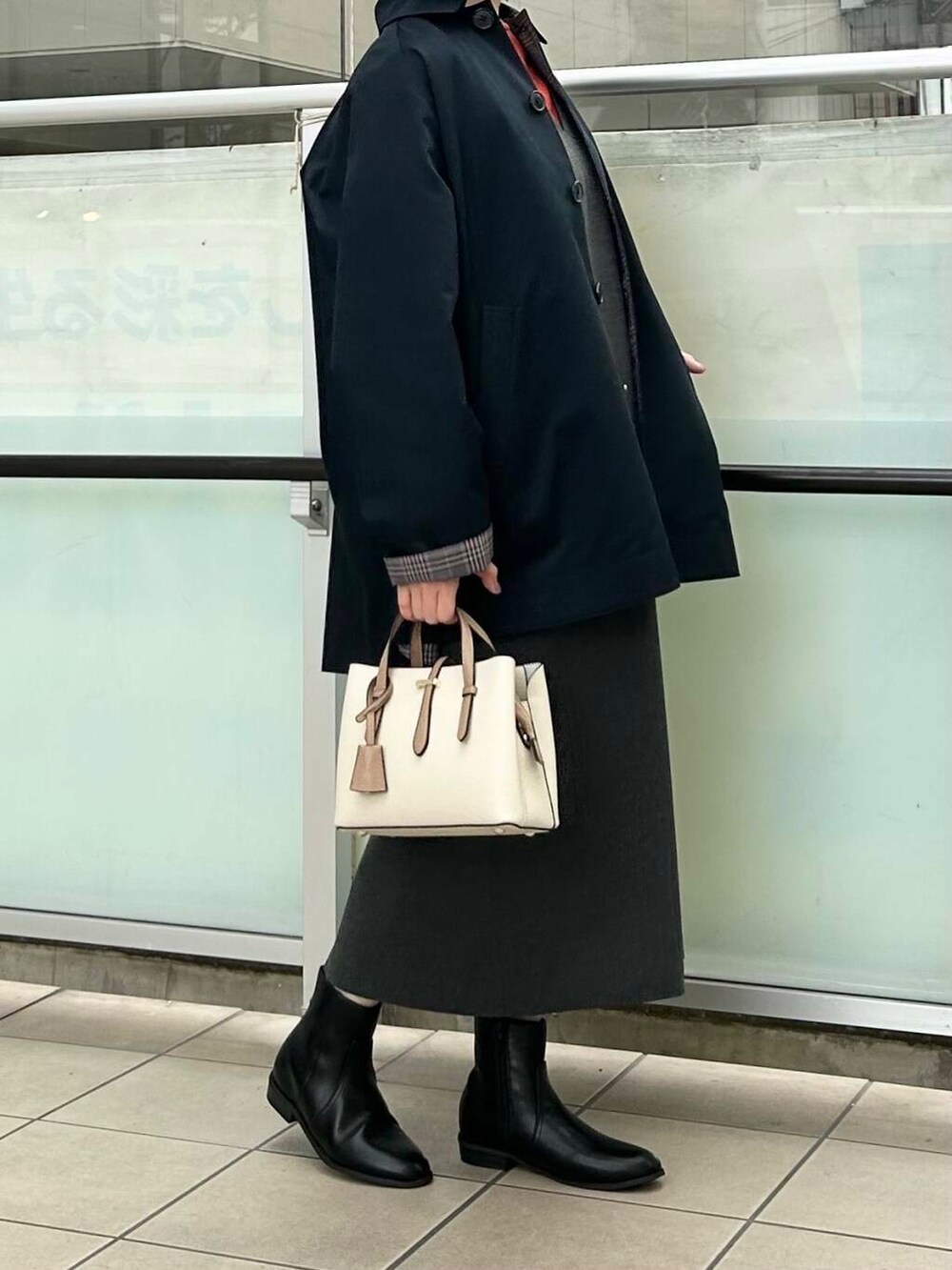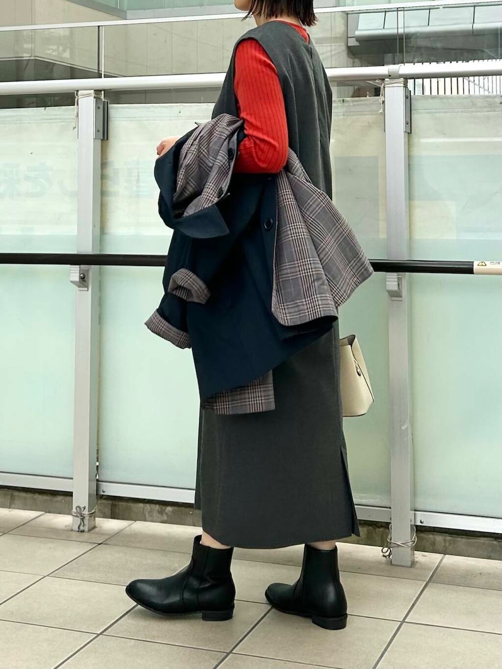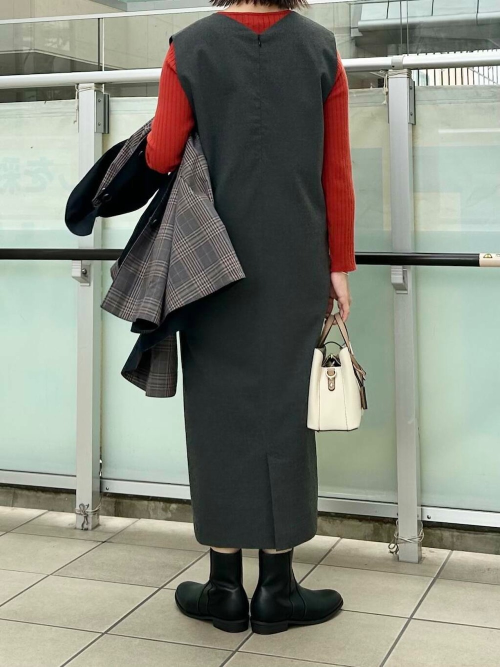 アウターはリバーシブルのコートを合わせました。裏がチェックになっています。