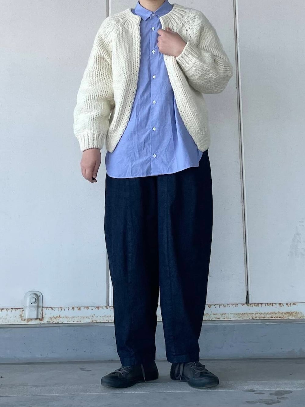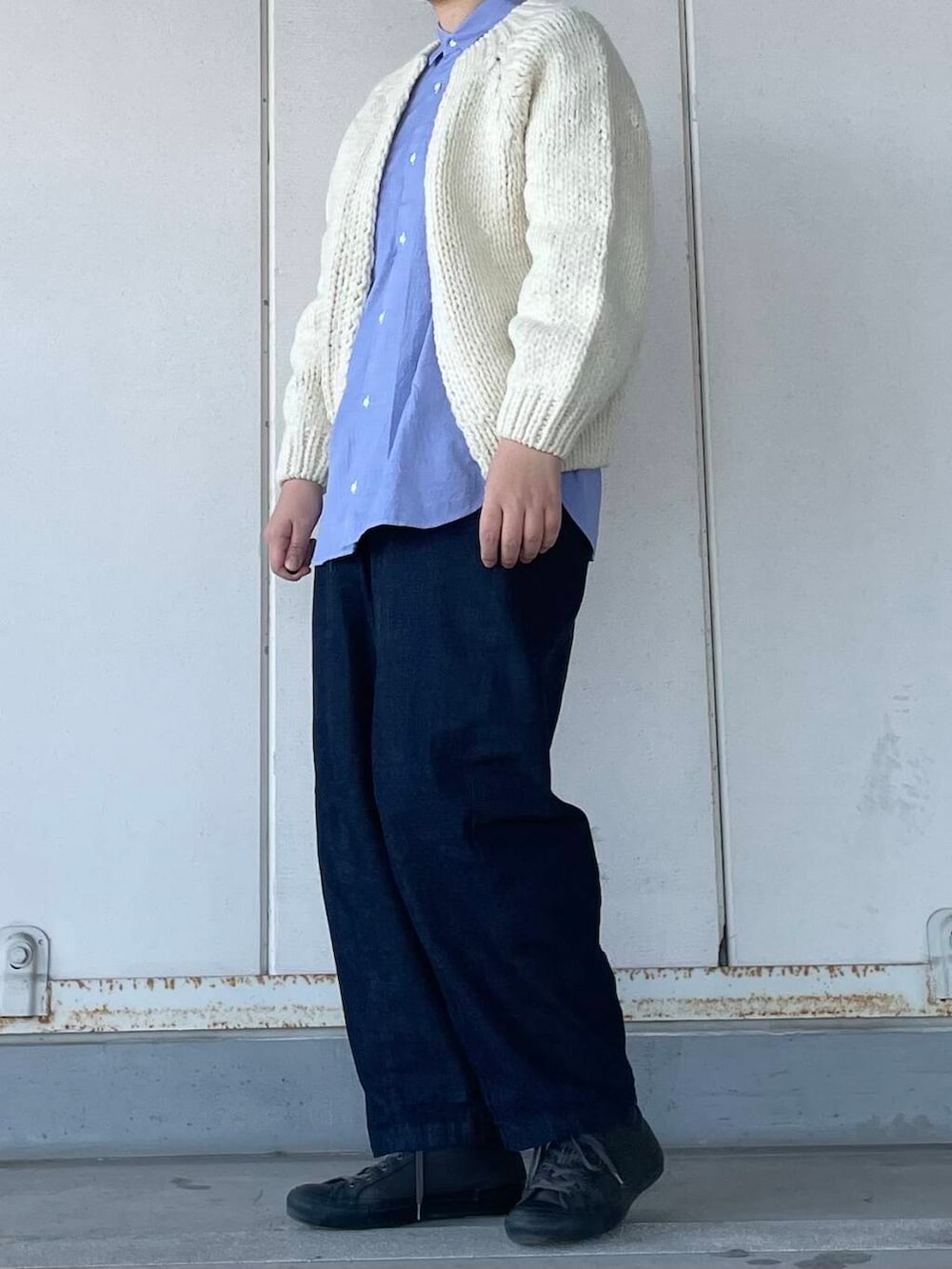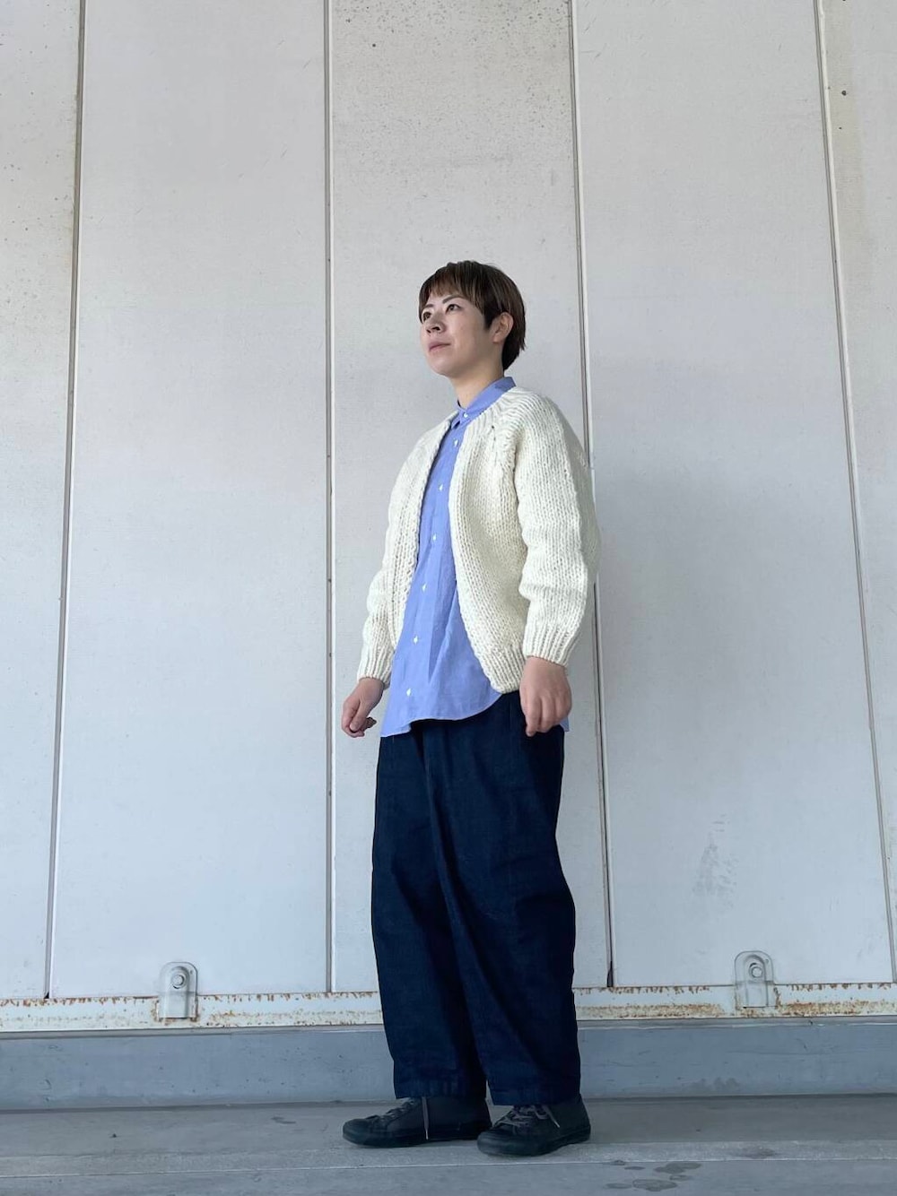 ボタンが無いデザインのため、サッと気軽に羽織れてアウター代わりにも良さそうです。