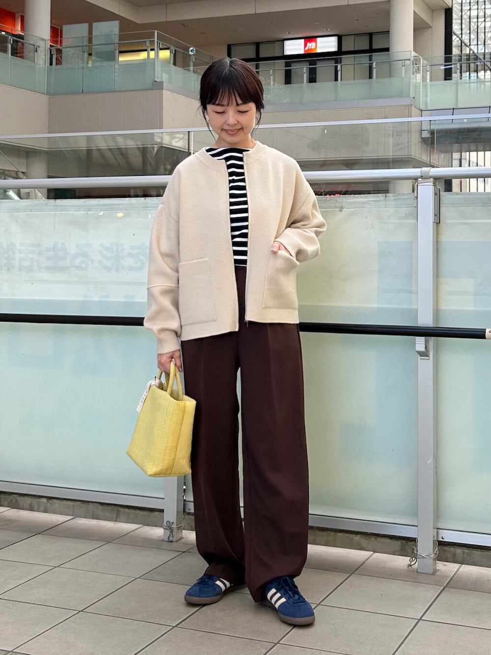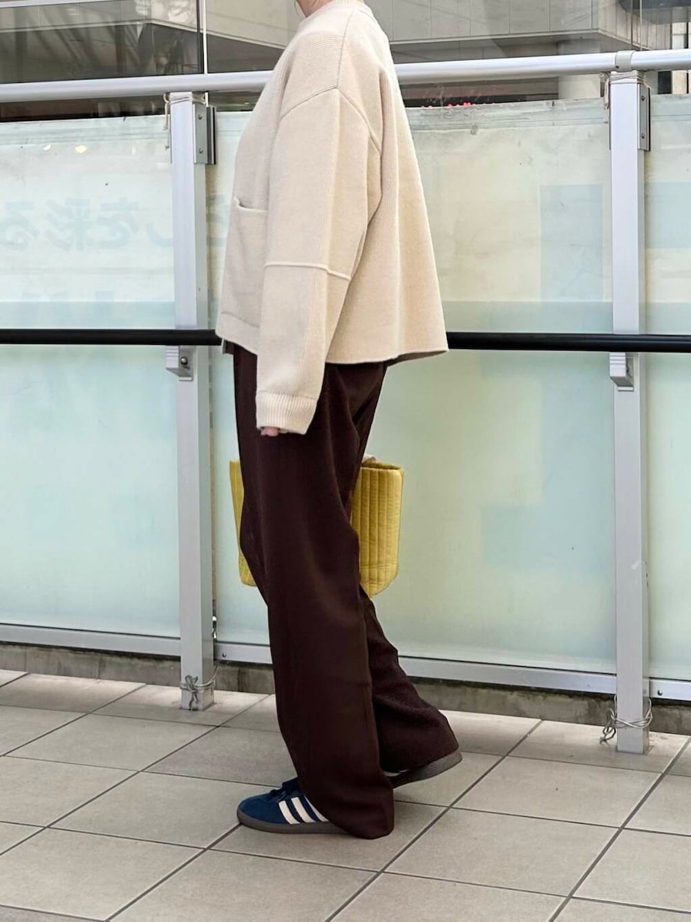 ボトムは秋らしいブラウンカラーのイージーパンツです。