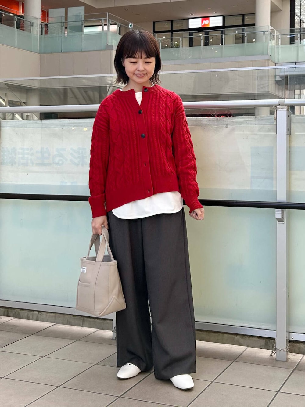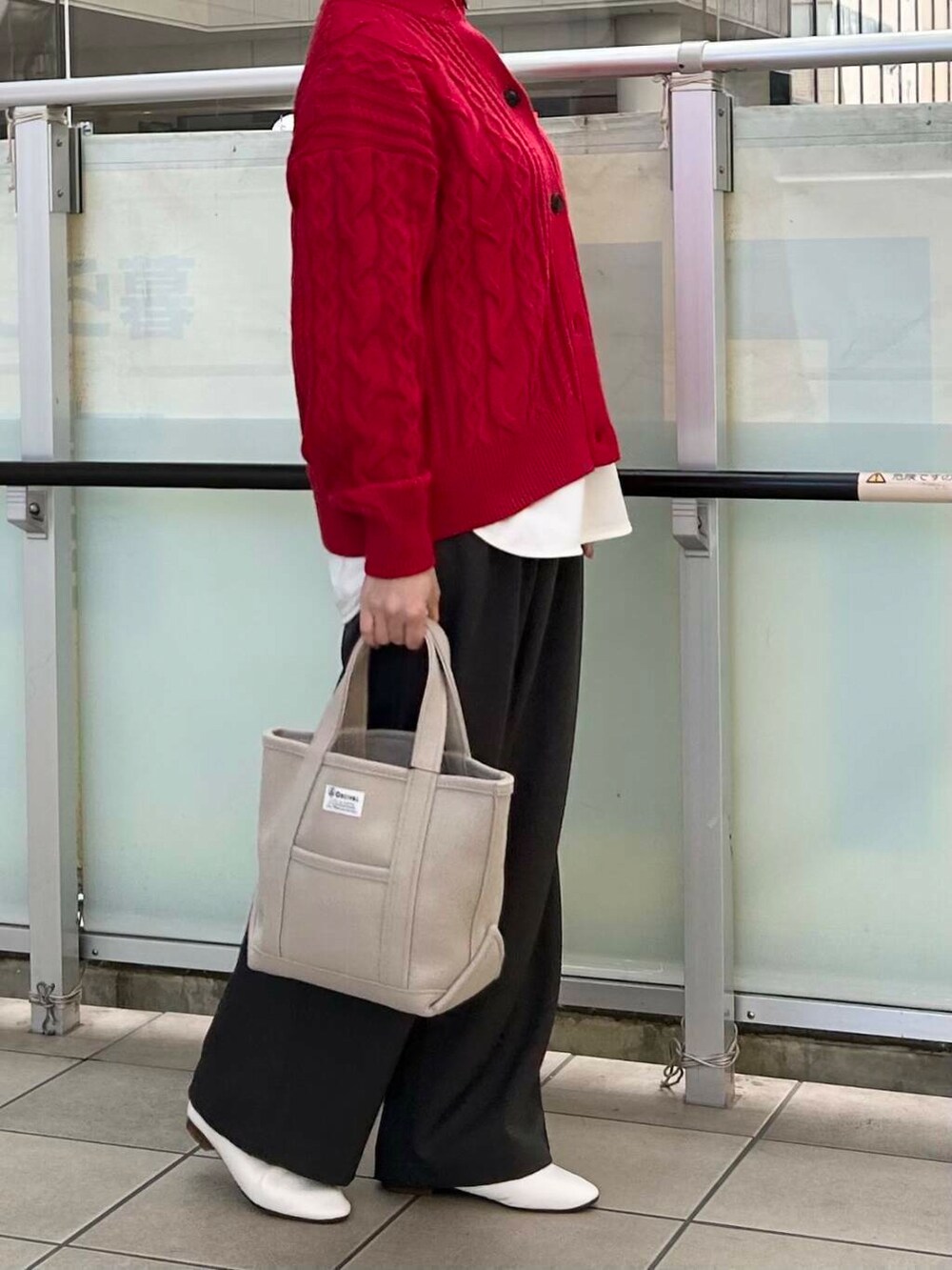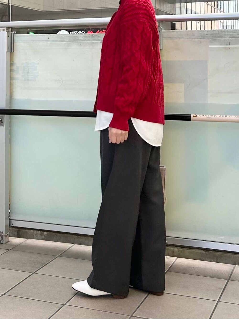 パキッとしすぎないようにグレーのパンツと合わせました。
