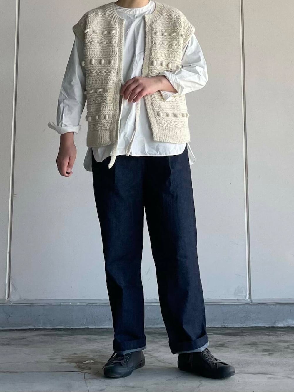 気温がなかなか安定しない時は、ベストのスタイリングが楽しめますね。