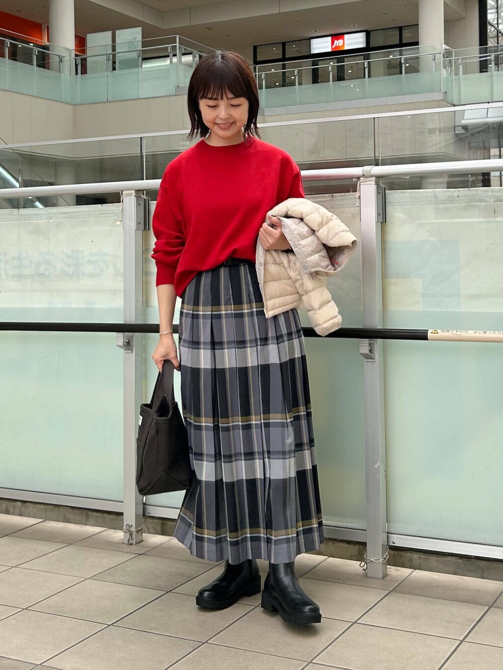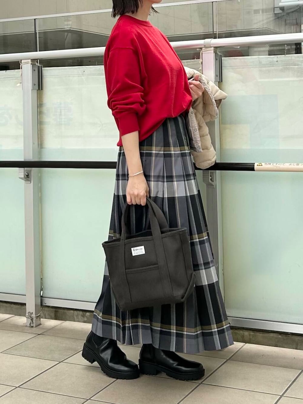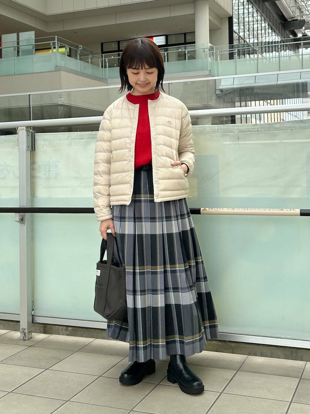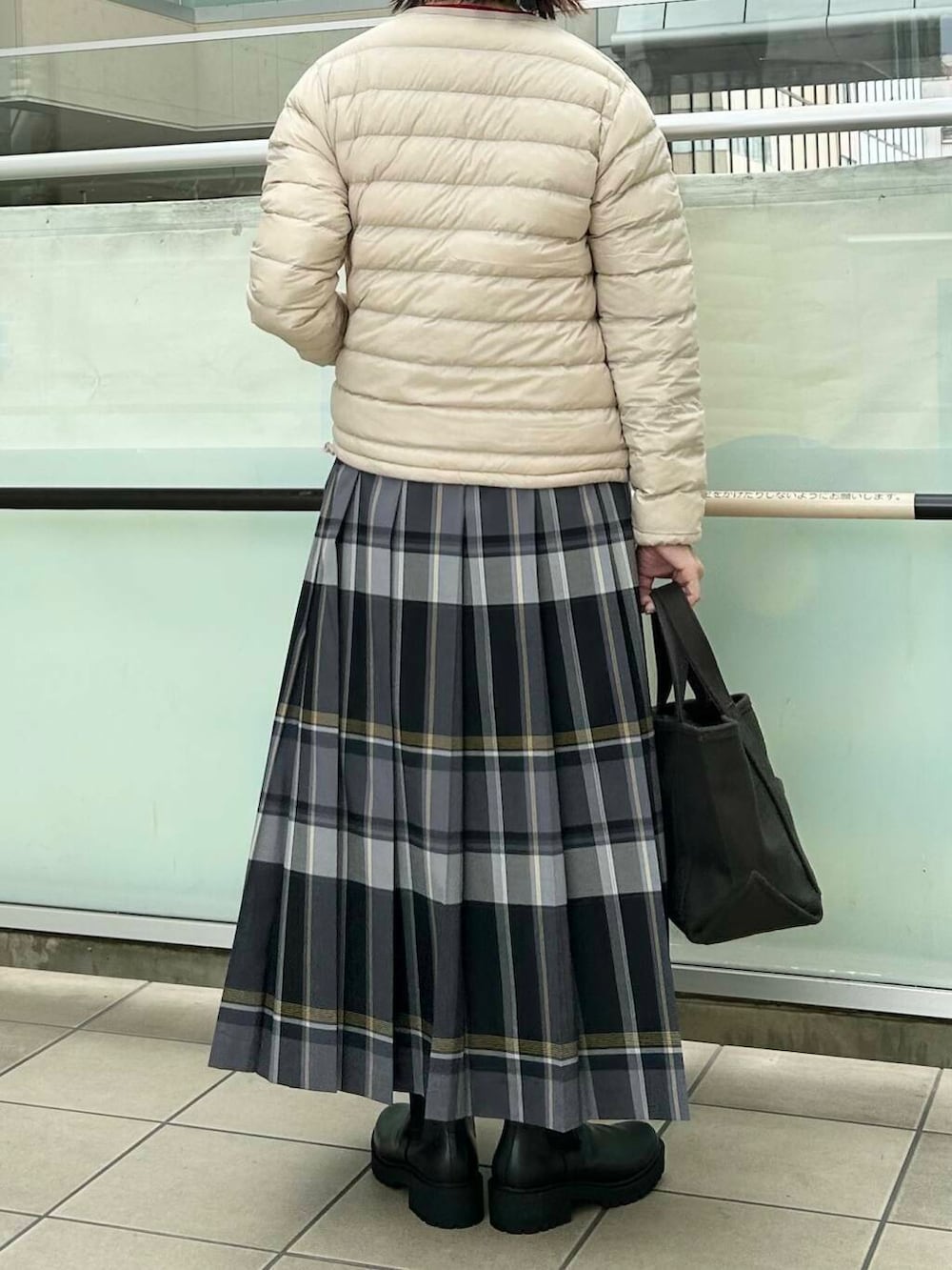 チェックスカートはしっかりとした厚手の生地です。長めの丈がかわいいですね。