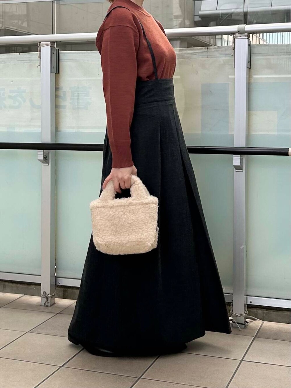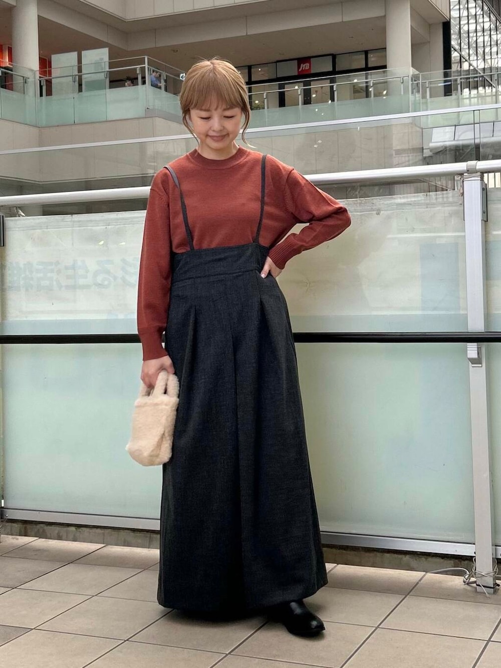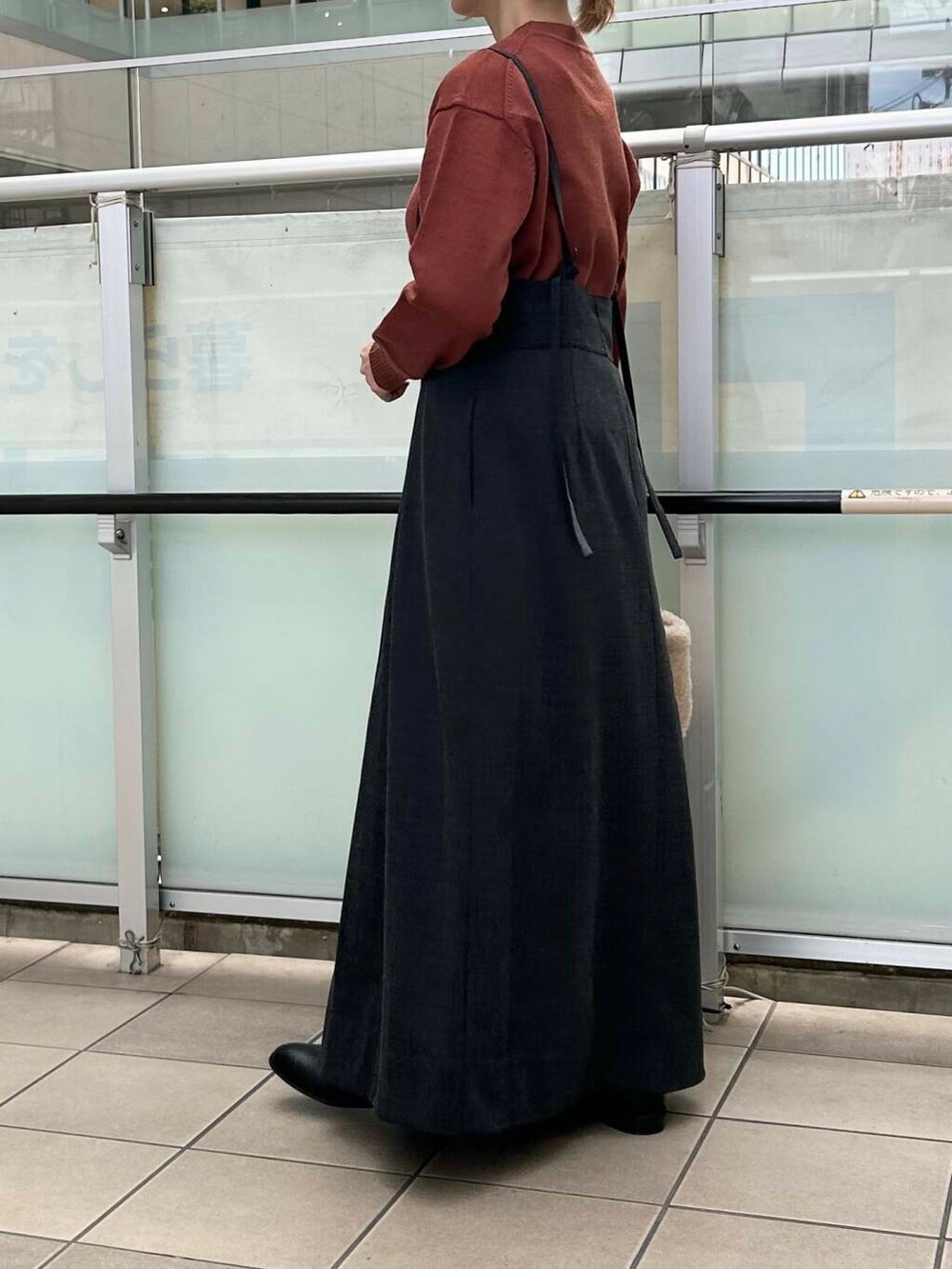 ハイウエストのキャミワンピースはMを着ました。長さは調節できますがMだと160cmの身長で床ギリギリぐらいの丈感です。