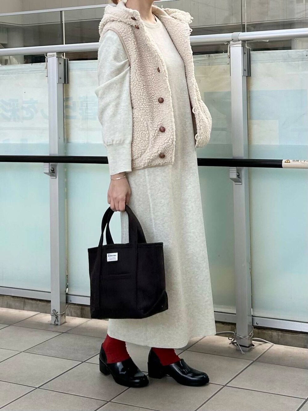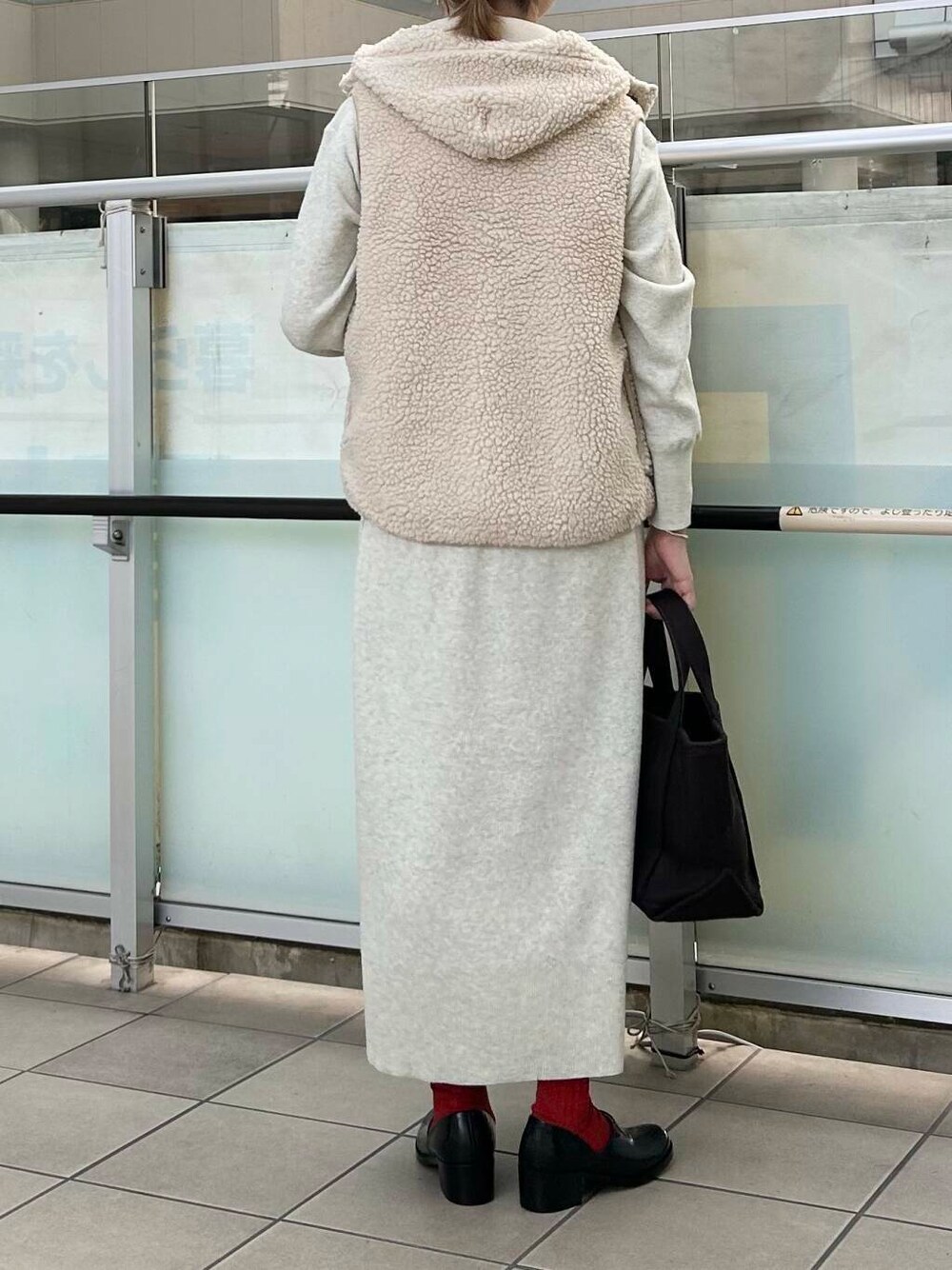 ボタンをしめると首まわりまでしっかりと暖かいですよ。