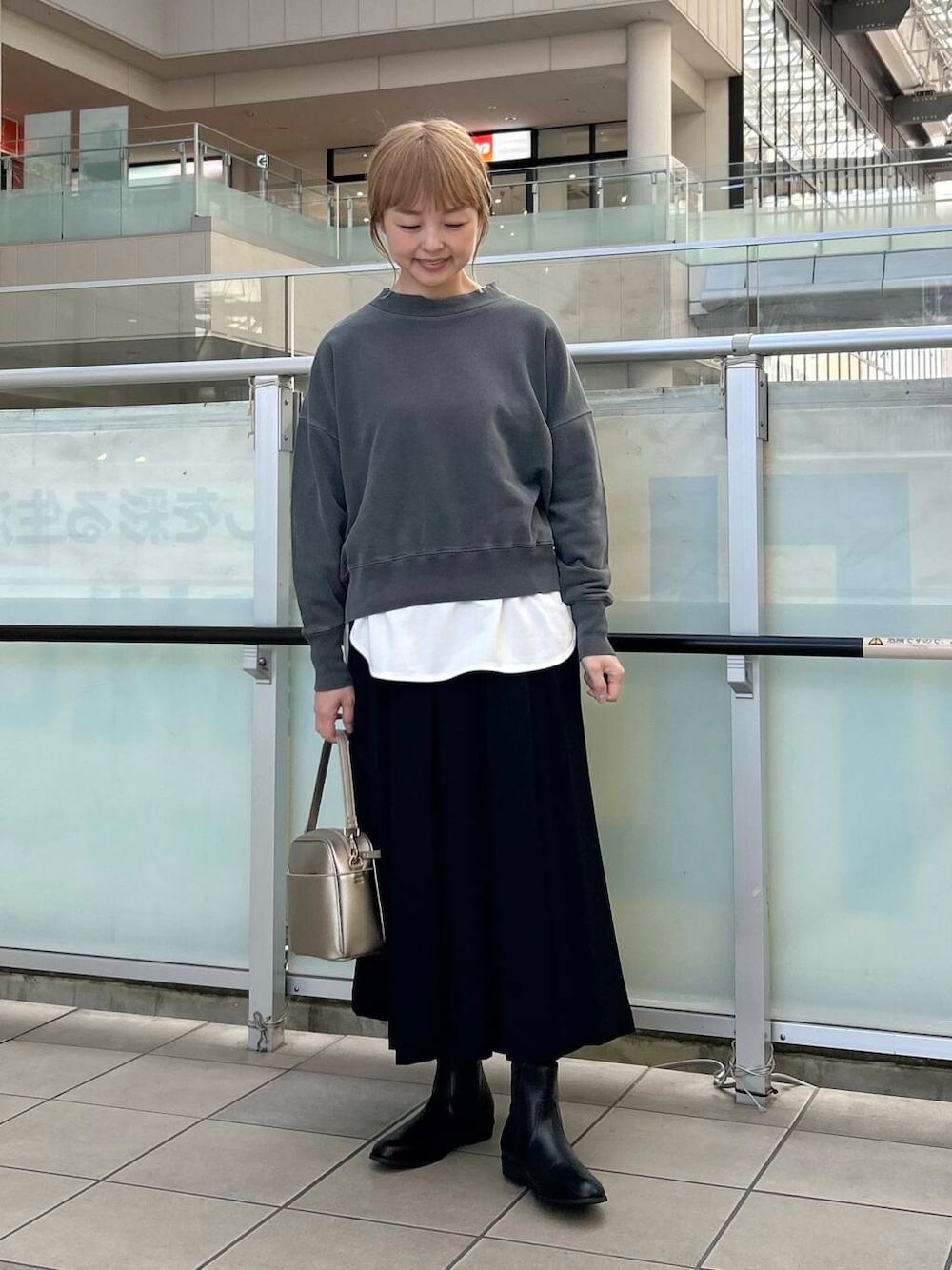 ラフになりすぎないようにスカートはプリーツスカートを合わせました。